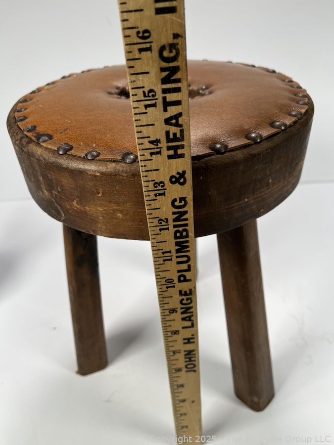 Lot #0075CM: Primitive Three Leg Milking Stool with Leather Seat