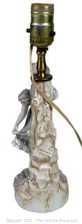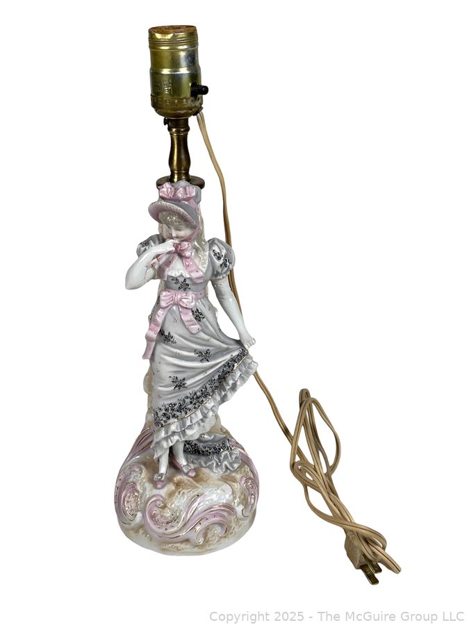 Lot #0288CP: Antique Ernst Bohne Blue Anchor Hallmark Parlor Lamp. Woman with Pink Bow Dress.