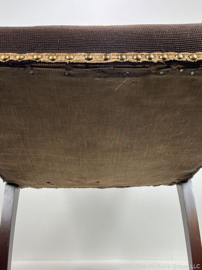 Lot #0246CP: Mahogany Federal Style Eagle Carved Scroll Armchair with Floral Needlepoint Seat