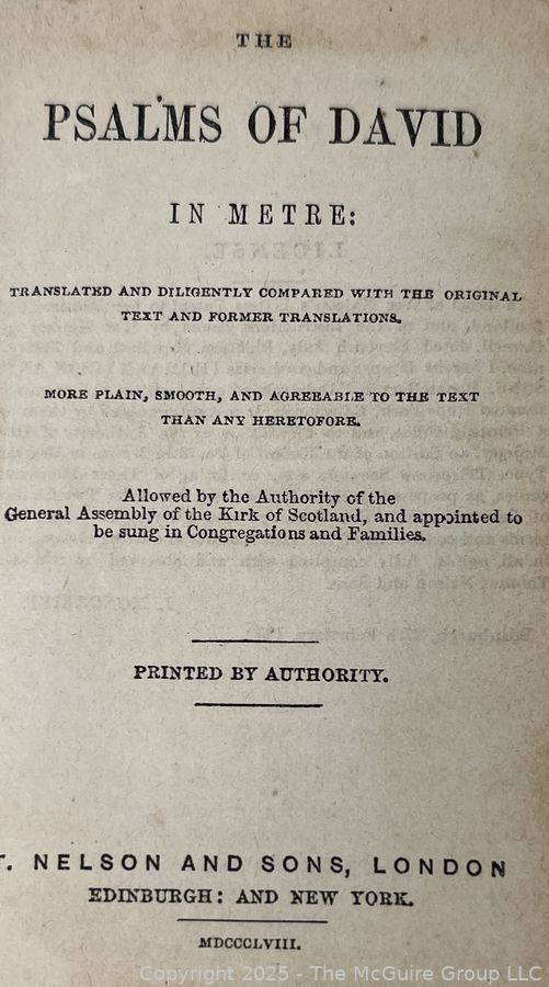 Lot #0373RM: 1858 The Psalms of David in Metre: Translated and Diligently Compared with the Original Text and Former Translations. Belonged to Fanny McMorris 1866