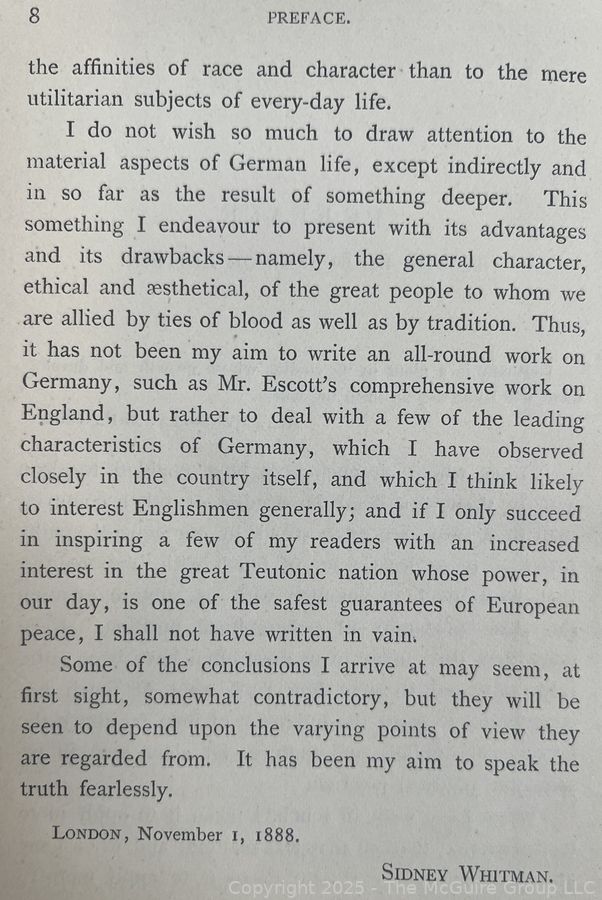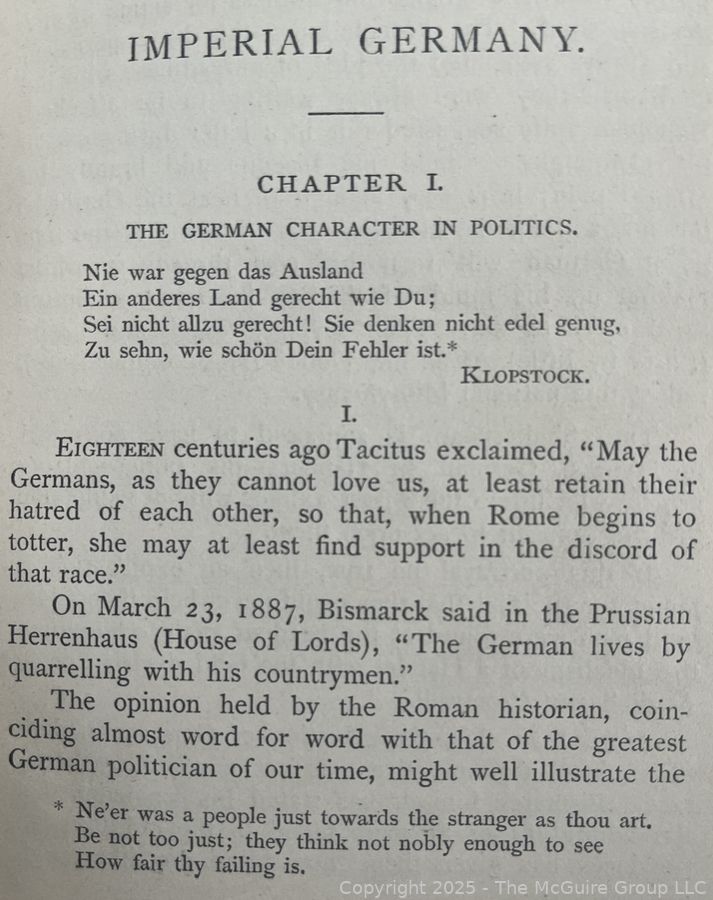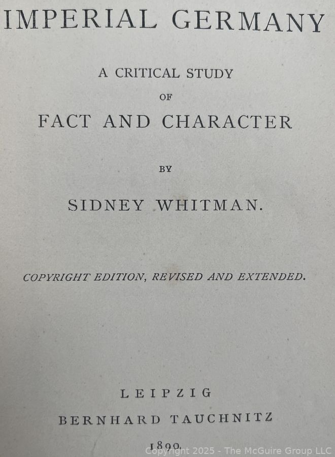 Lot #0432RM: 1890 Leather Bound HB Book Titled Imperial Germany: A Critical Study of Fact and Character by Sidney Whitman Book