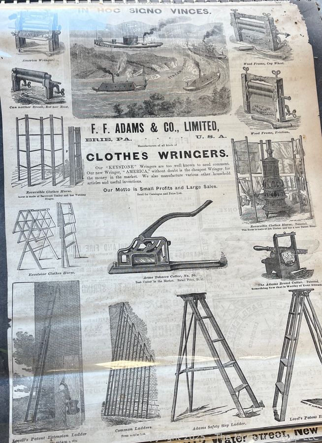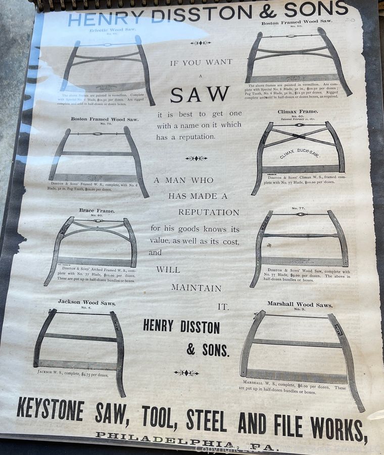Lot #0024RMN: 19th C Trade Advertising Broadsheets: F F Adams & Co., Russell & Erwin, L. Coes & Co., Disston, The Francis Axe. Co., Brown & Sharps, Best Brick Co.