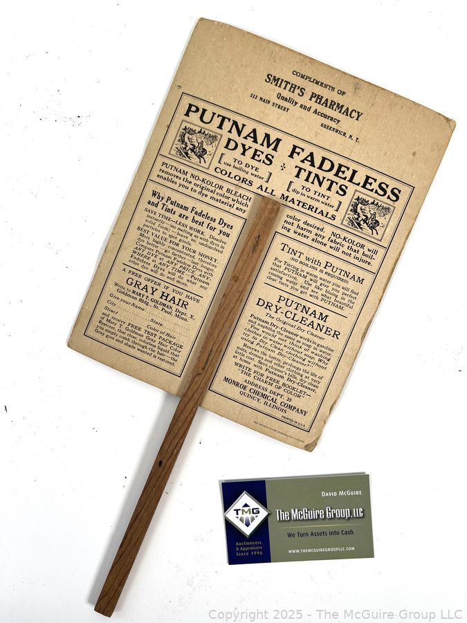 Lot #0228RM: Advertising Hand Fan - Putnam Dyes from Smith's Pharmacy Greenwich NY