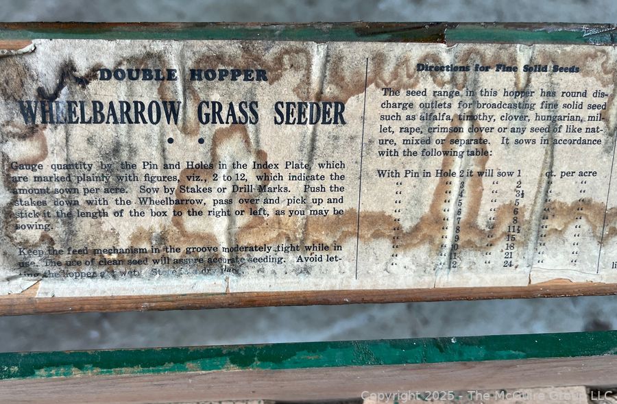 Lot #0171RM: Antique Sears & Roebuck Double Hopper Wheelbarrow Grass Seeder