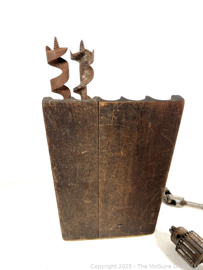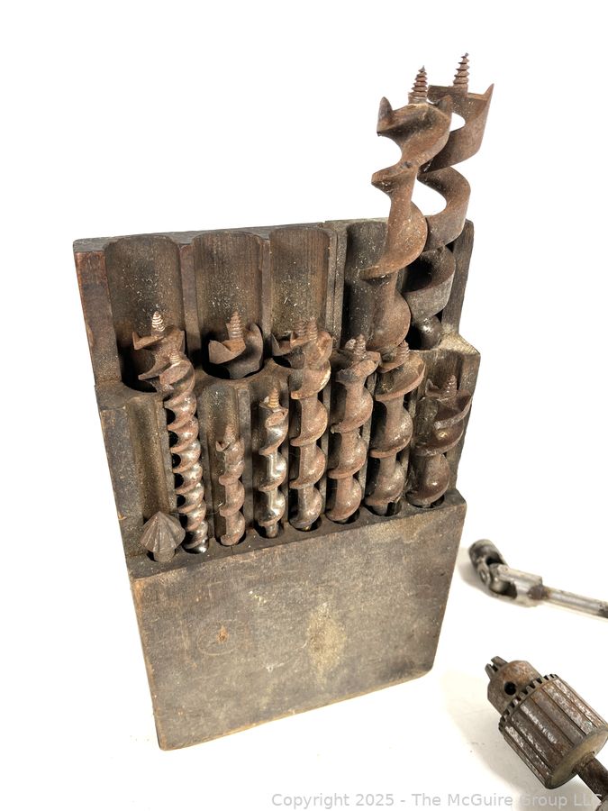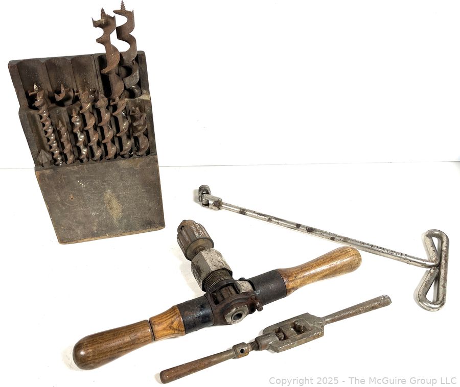 Lot #0562RMA: Circa 1920 Millers Falls No. 4 Ratchet "T" Auger Handle and Set of Wood Boring Bits