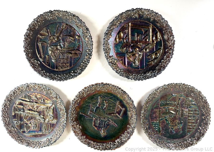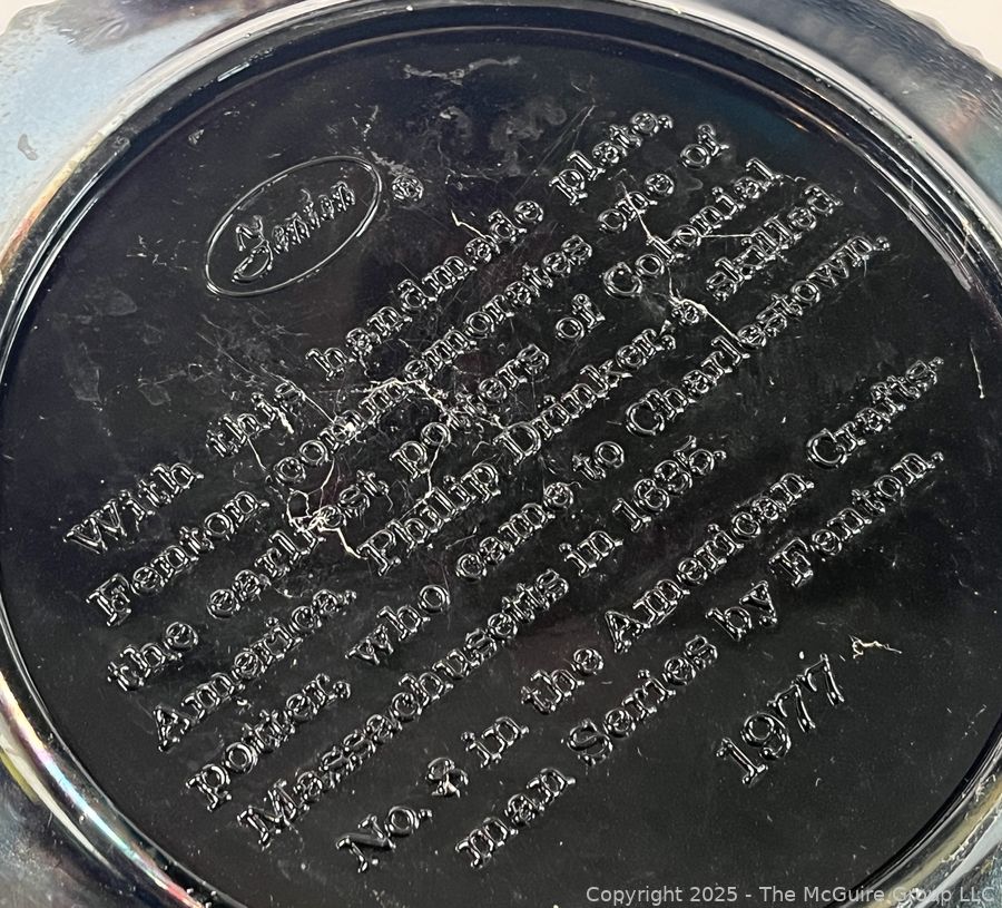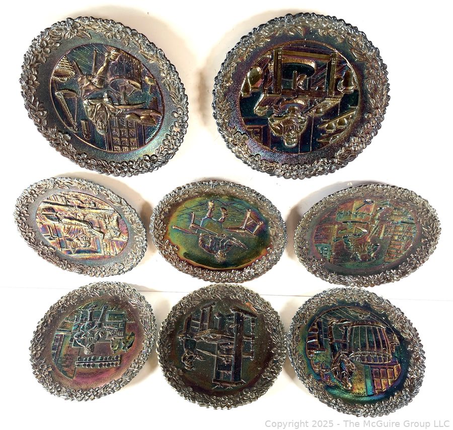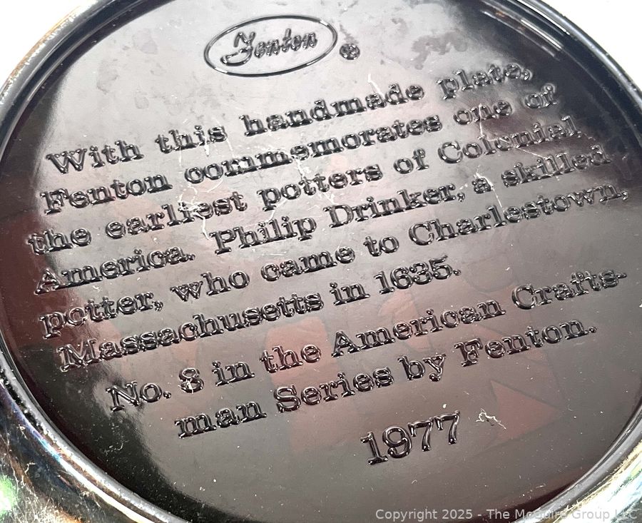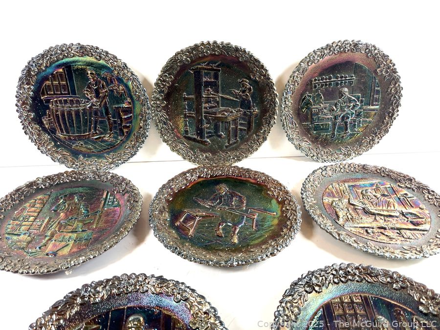 Lot #0372RM: Eight (8) Fenton Carnival Glass Commemorative Plates (e.g. Colonial Potter Philip Drinker 1977)
