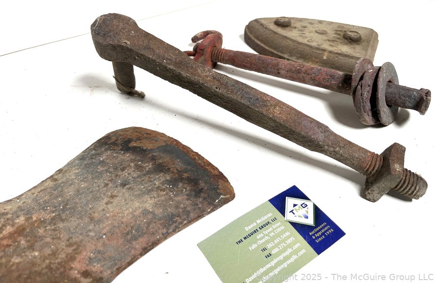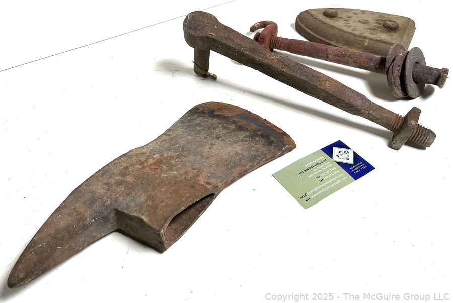Lot #0522RMA: Firefighter's Axe Head, SAD Iron Base, Hinge and Hanger