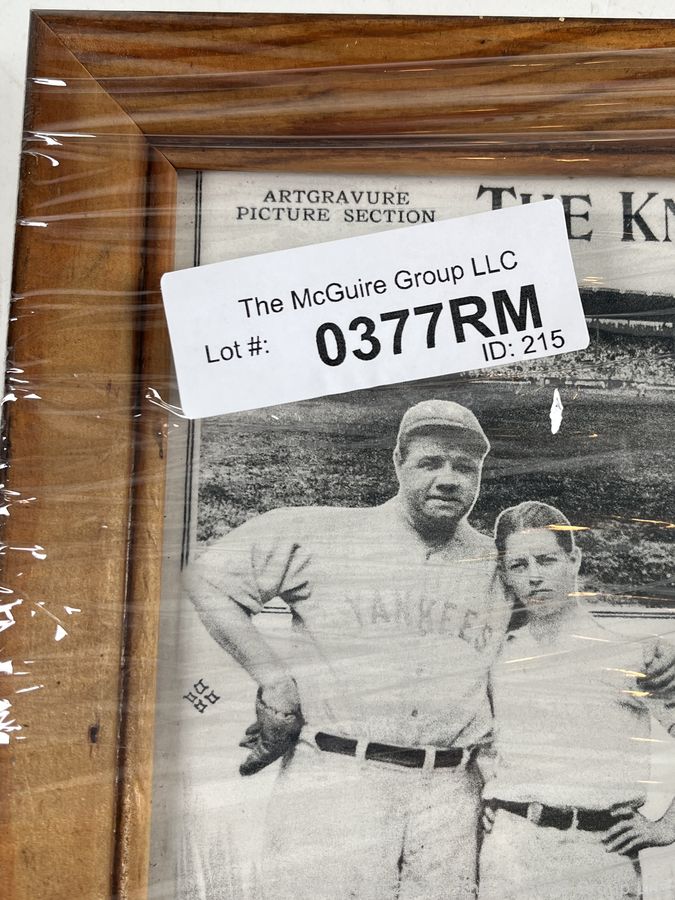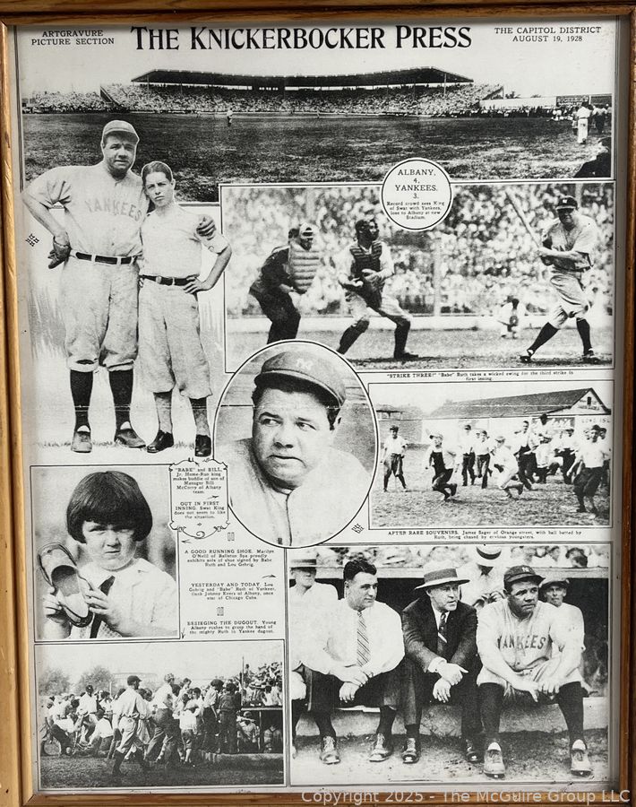 Lot #0377RM: Framed lithograph by The Knickerbocker Press of Hawkins Stadium with Babe Ruth's Last Exhibition Game Albany NY 1938