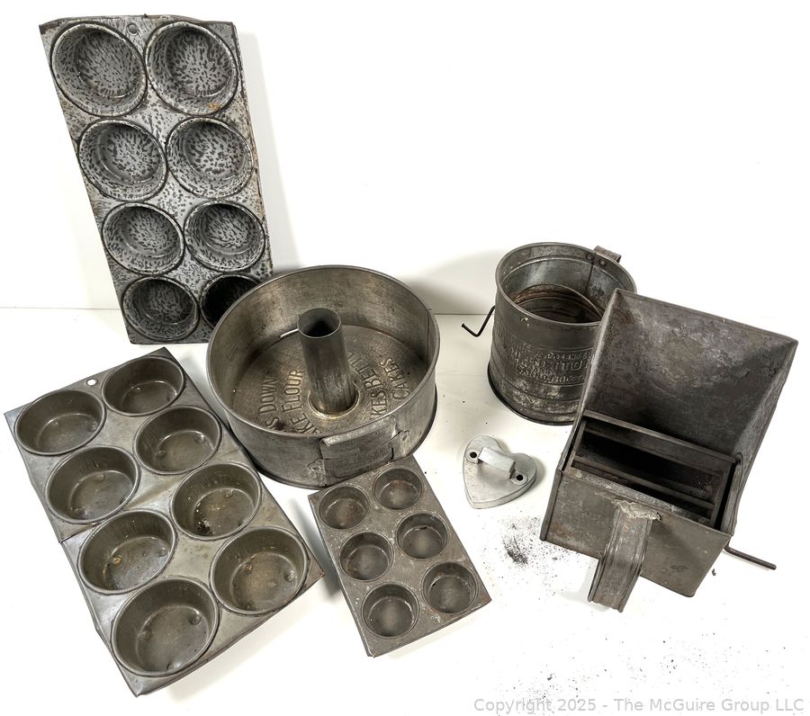 Lot #0292RM: Graniteware and Galvanized Metal Baking Sifters & Cupcake Trays