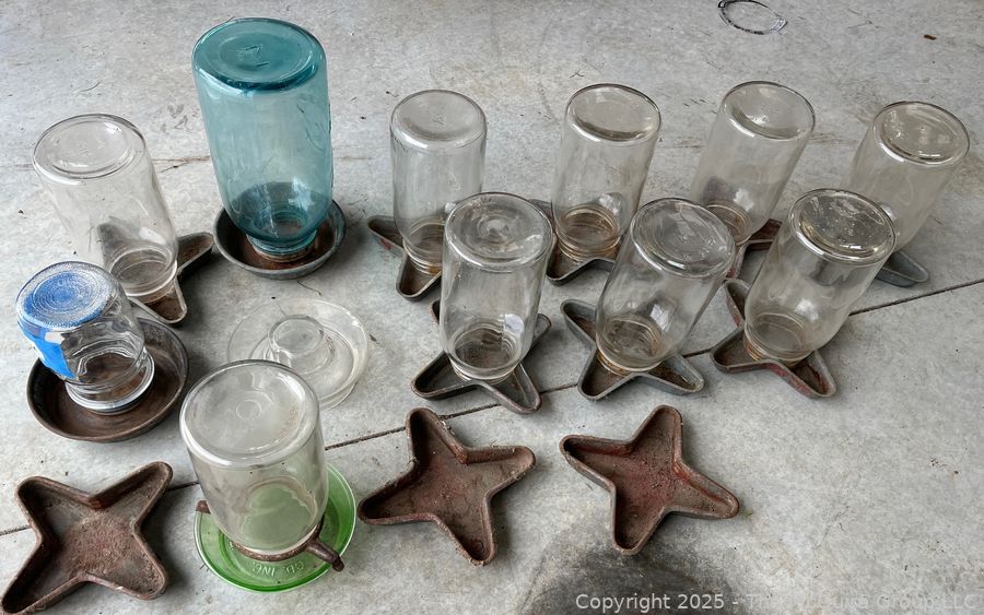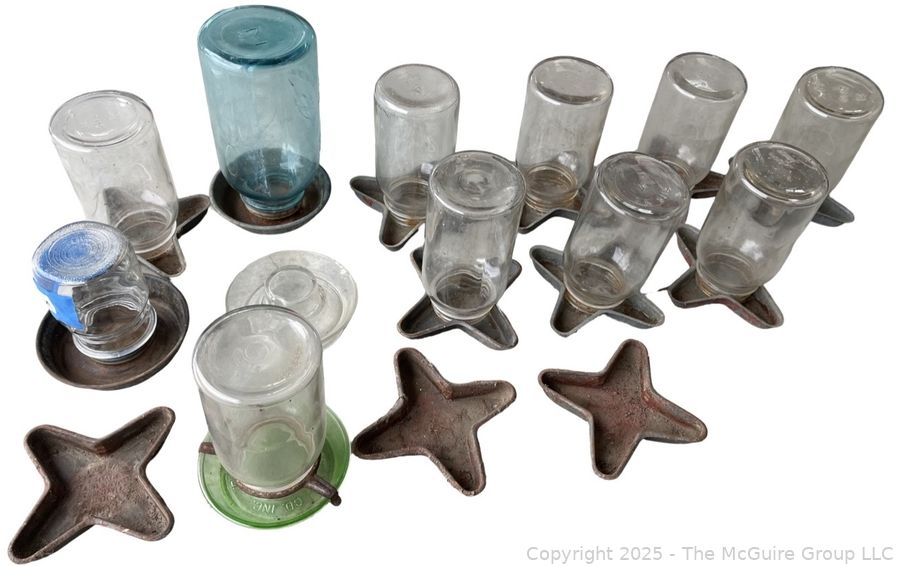 Lot #0575RM: Group of Glass Canning Jar Chicken Feeders