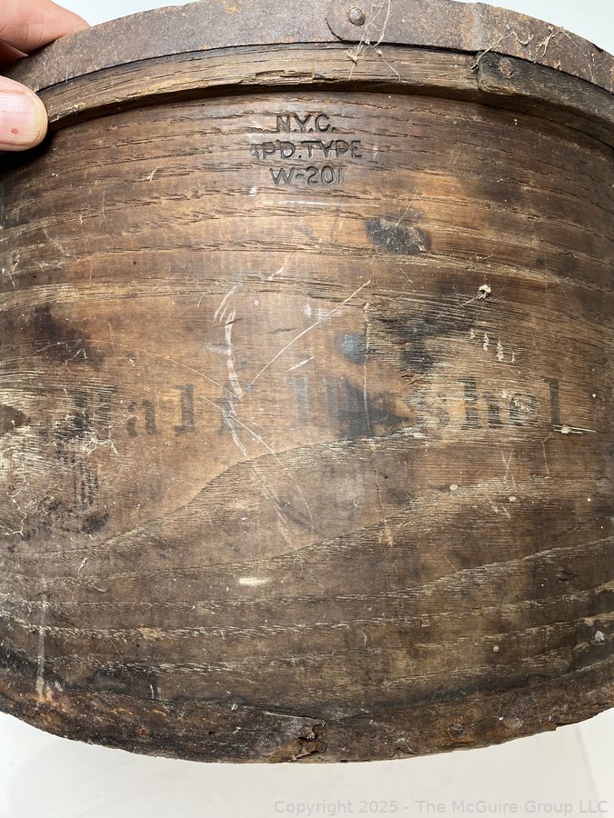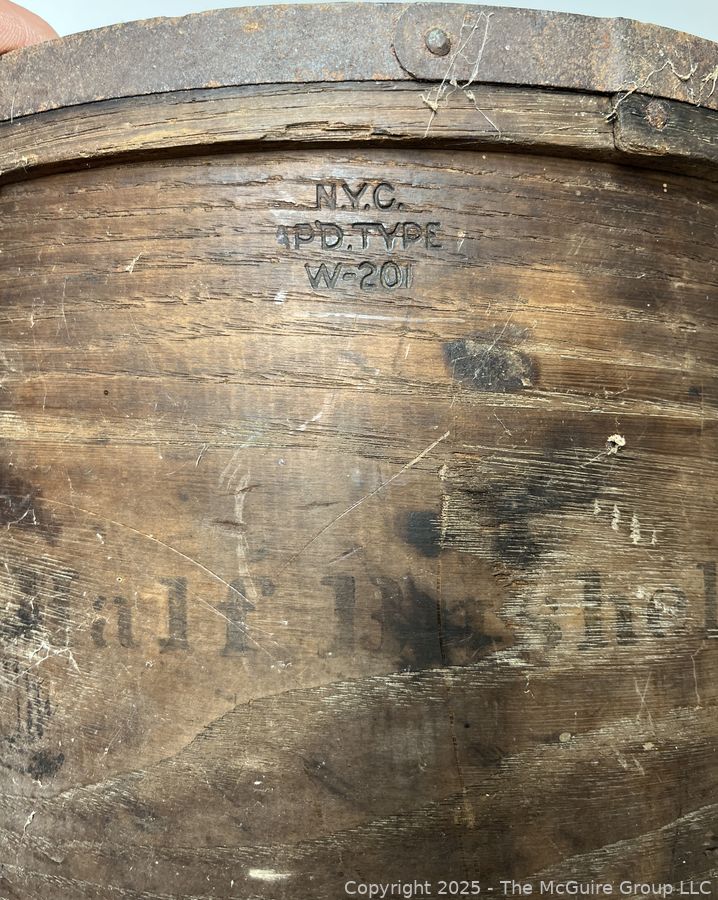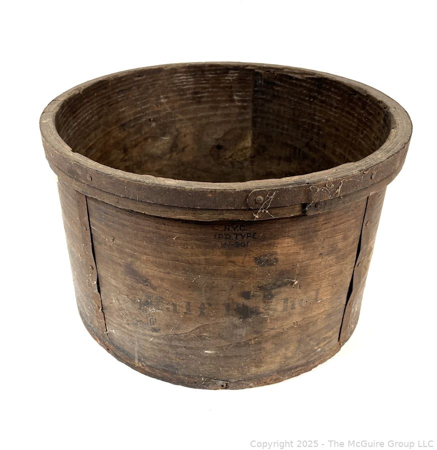 Lot #0474RM: Half-Bushel Bentwood Barrel/Basket Stamped NYC PD Type W-20