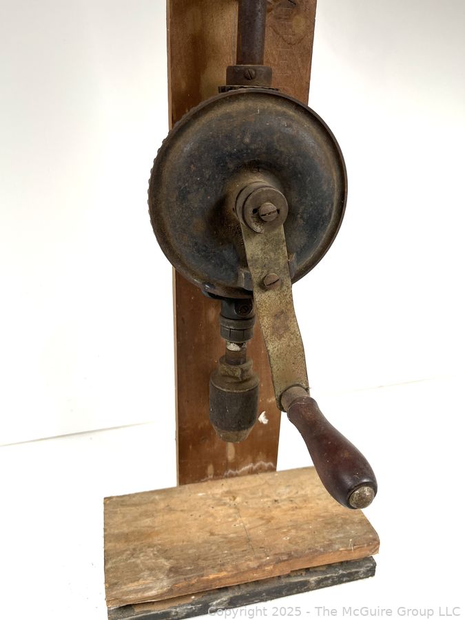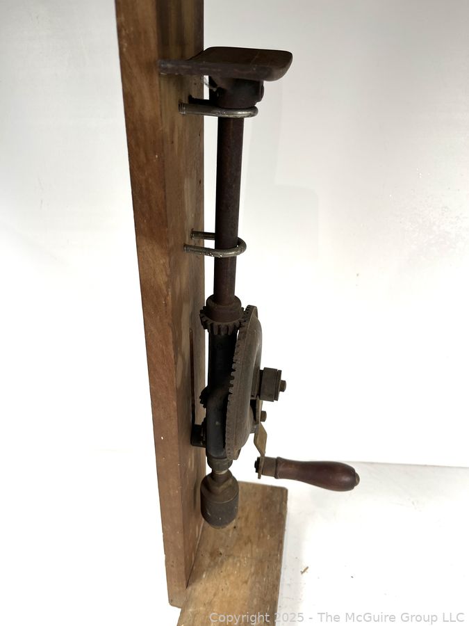 Lot #0494RM: Hand-Cranked Drill Press Attached to Board Base