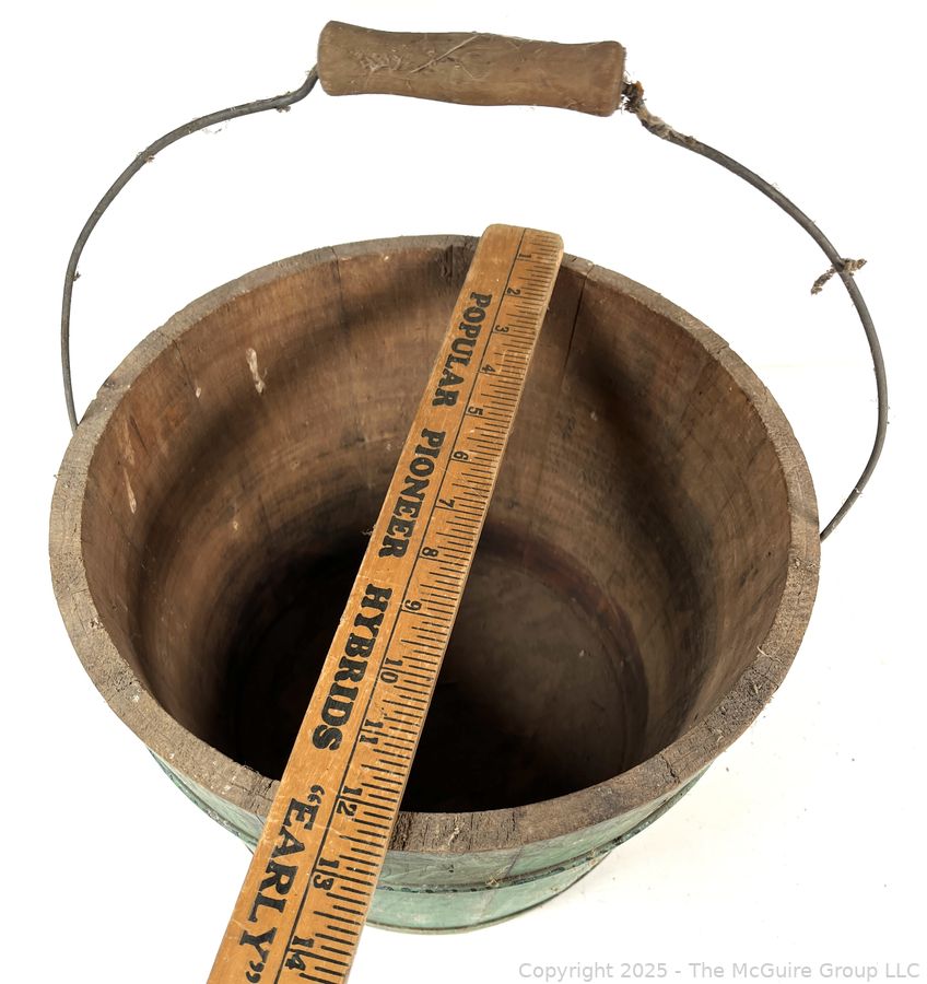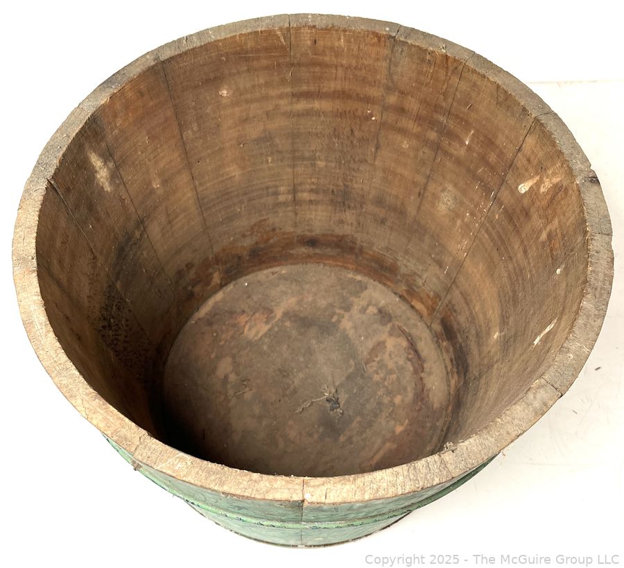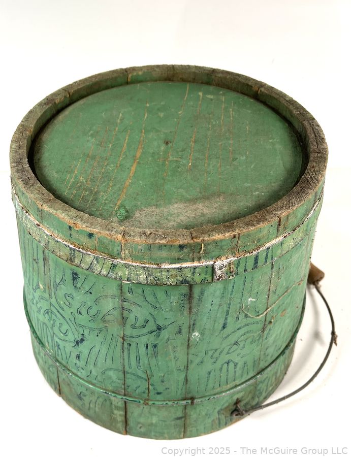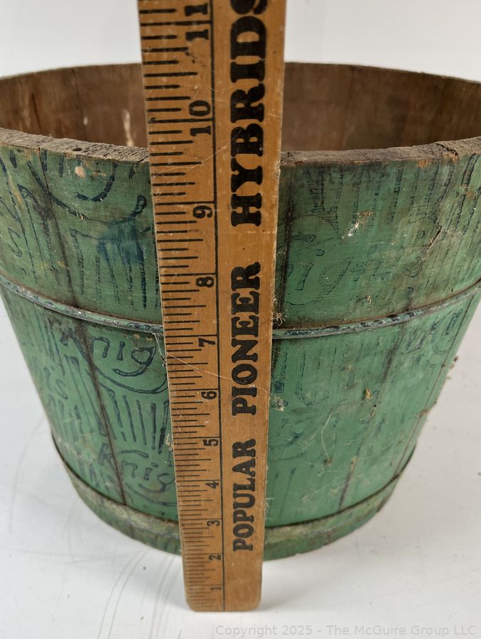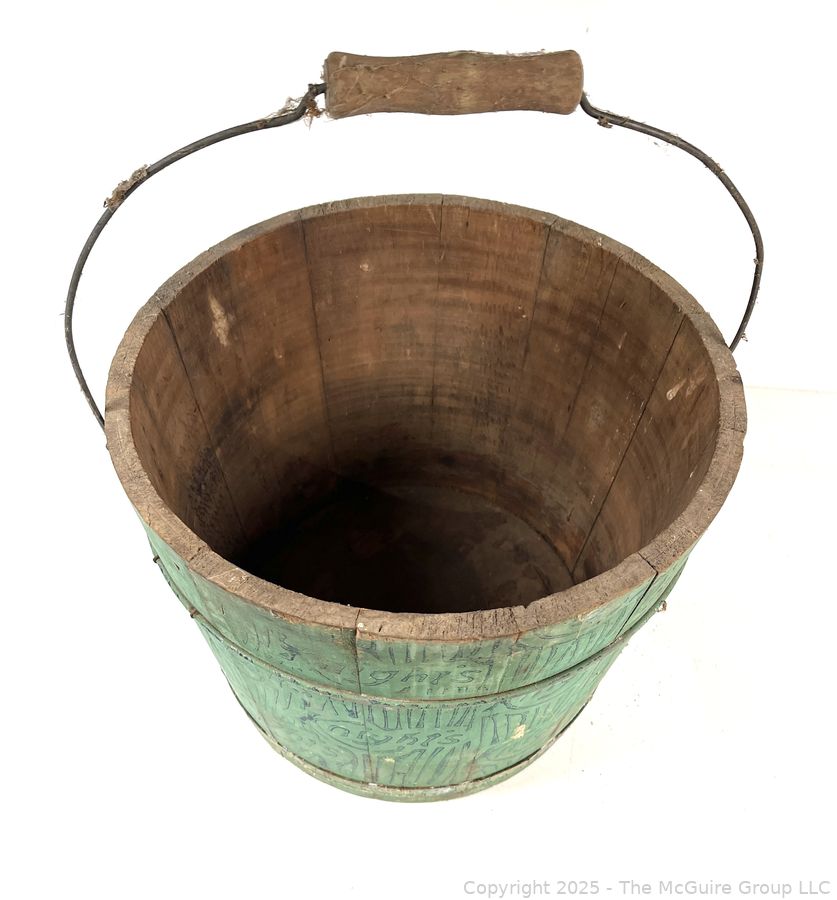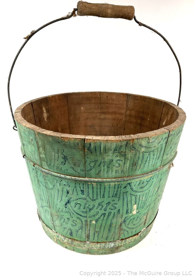 Lot #0477RM: Knight's Wood Stave Bucket w/ Original Paint and Stenciling. Measures 9 1/2" Tall