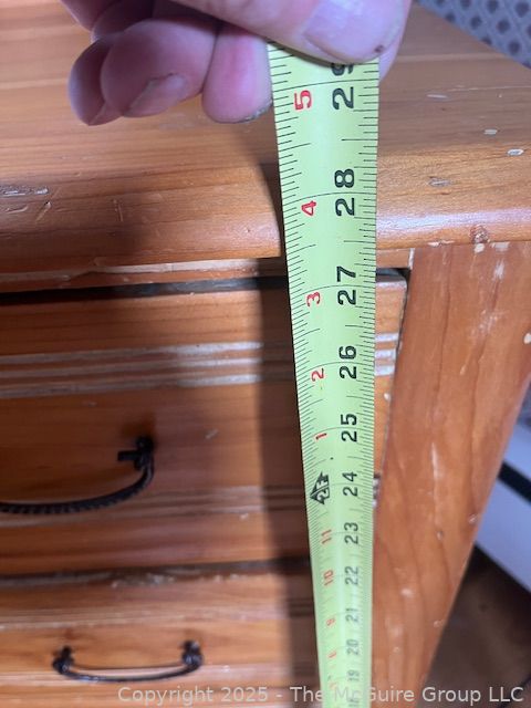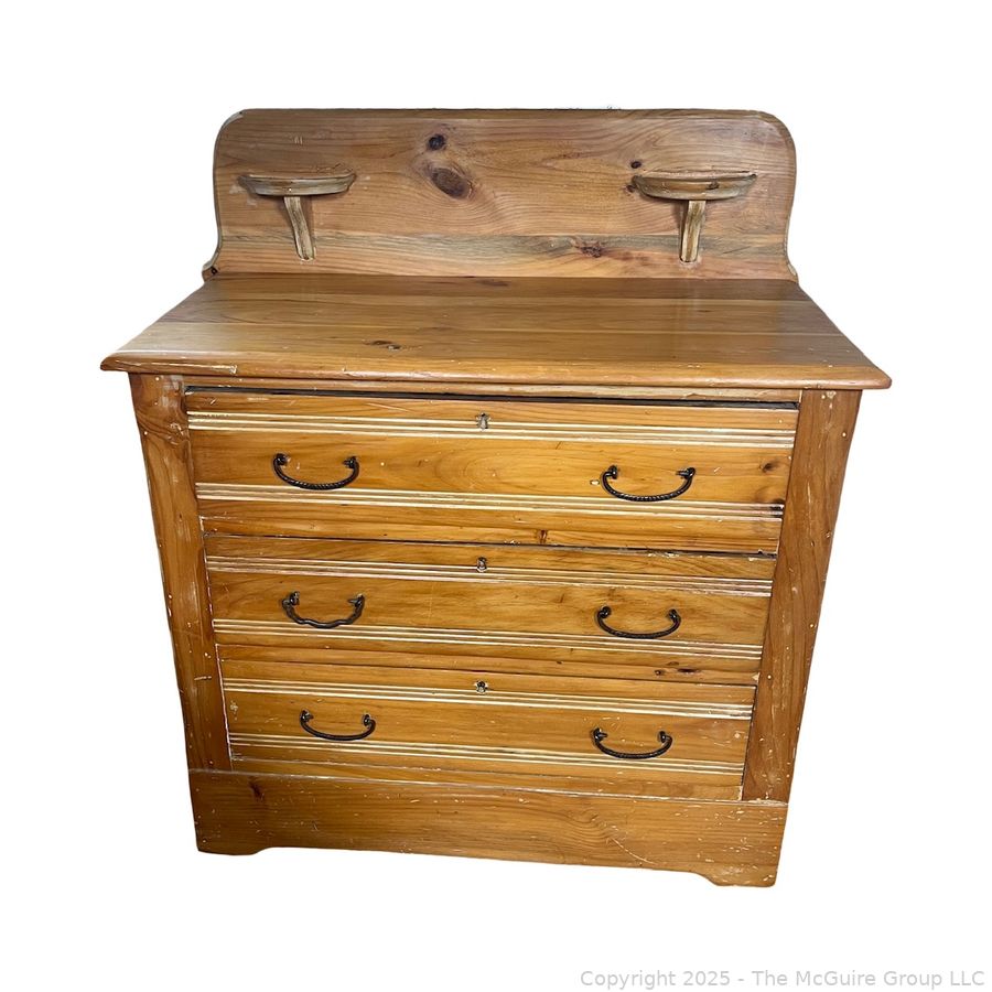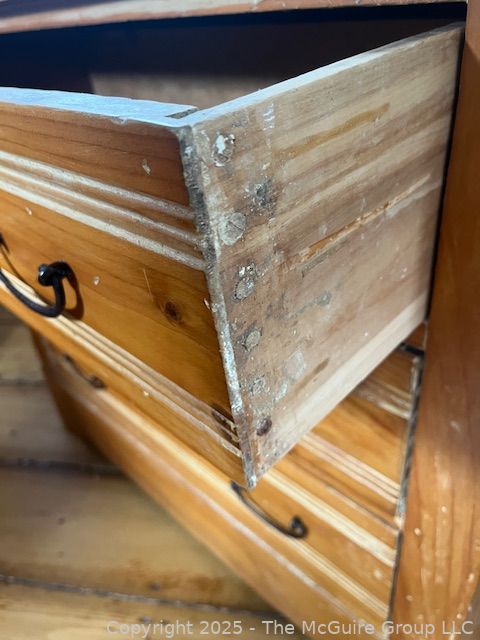 Lot #0001RM: Knotty Pine Three Drawer Dresser. Measures 36 x 16 x 28"T (36"T at back)