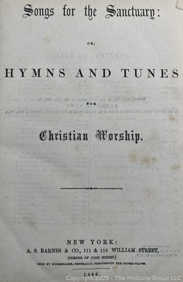 Lot #0388RM: Leather Bound 1866 Songs For The Sanctuary Or Hymns And Tunes For Christian Worship