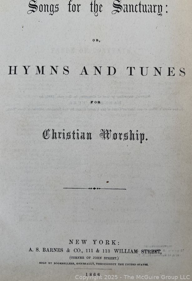 Lot #0382RM: Leather Bound Book 1866 Songs For The Sanctuary Or Hymns And Tunes For Christian Worship