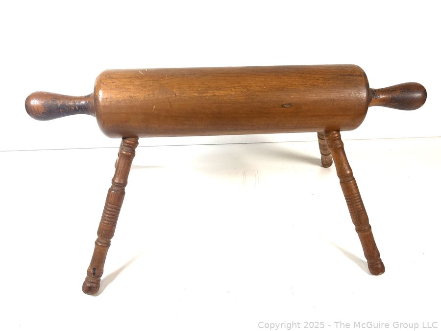 Lot #0475RM: Maple Wood Rolling Pin Form Foot Stool