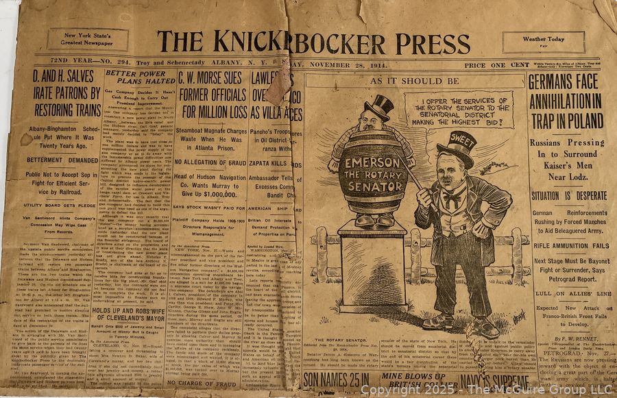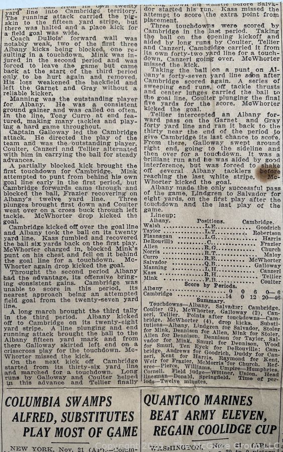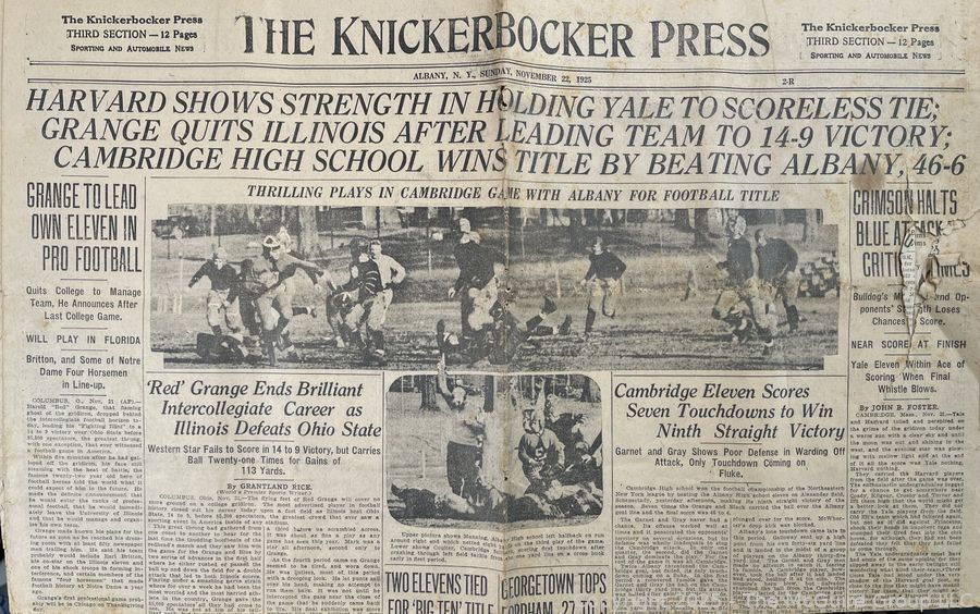 Lot #0412RM: Newspapers Including The 1925 Knickerbocker Press That Covered The Cambridge NY High School Football Team's Championship Win Over Albany NY.