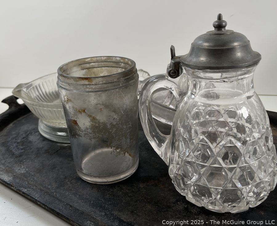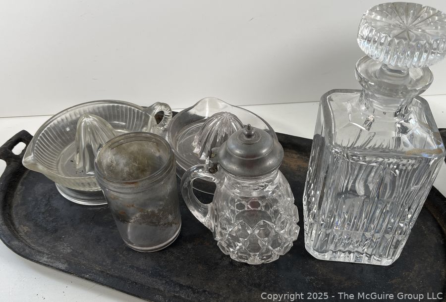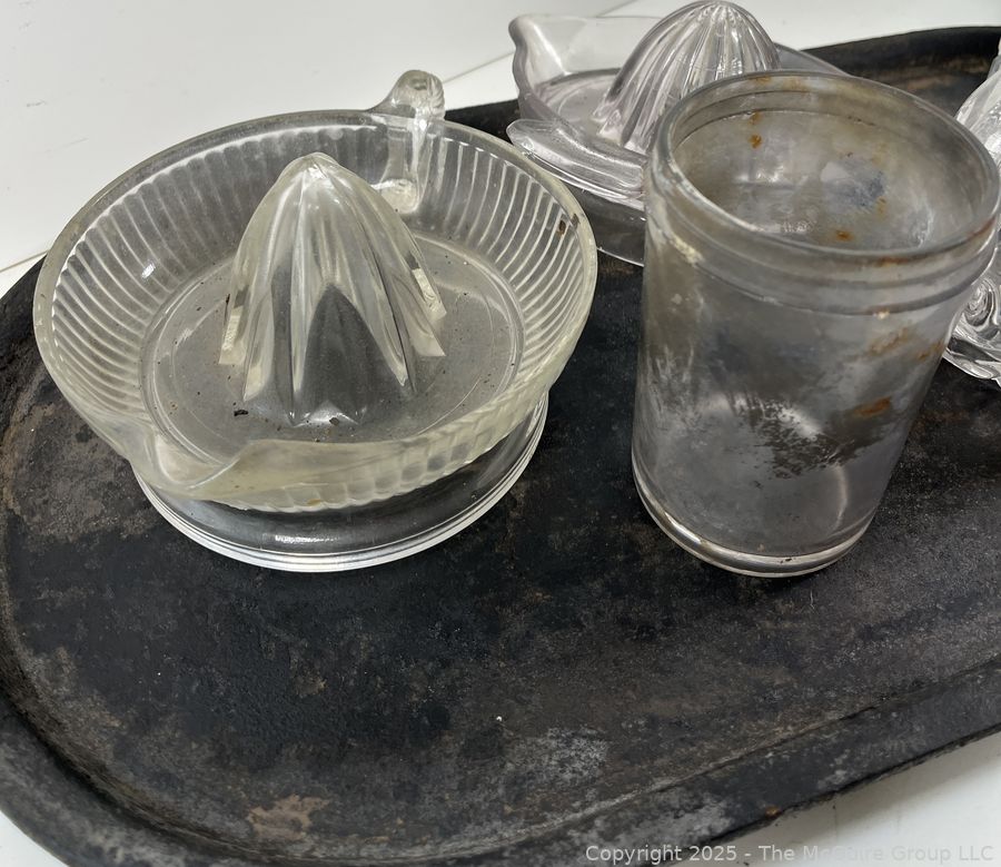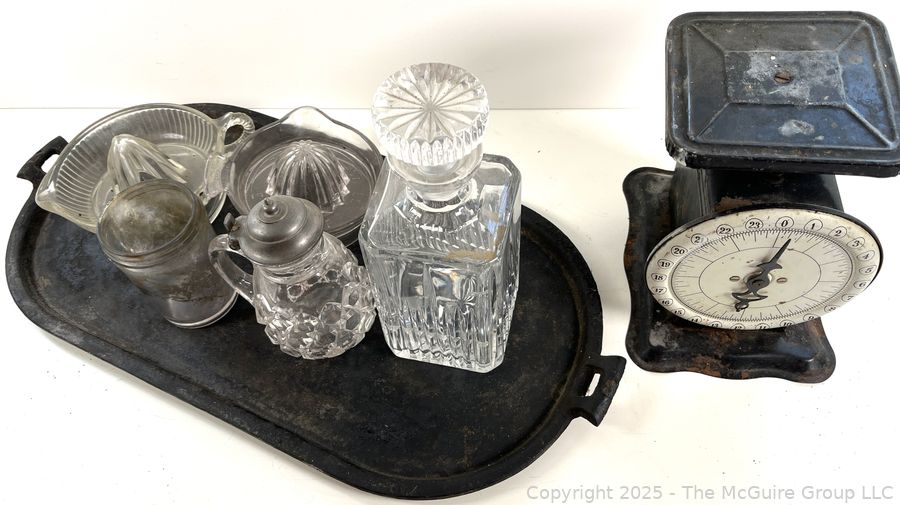 Lot #0315RM: Oval Cast Iron Skillet, Glass Kitchen Items and Spring-Loaded Scale