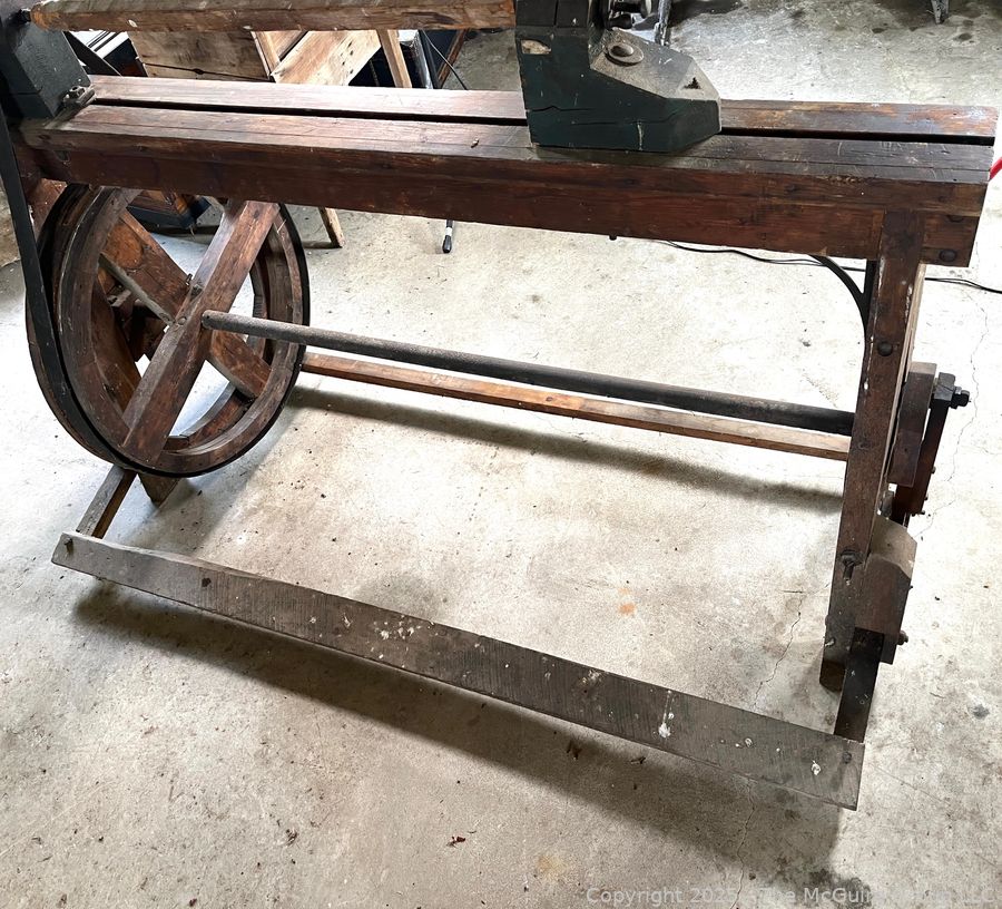 Lot #0110RM: Primitive Treadle Woodworking Lathe. 36"L Bed