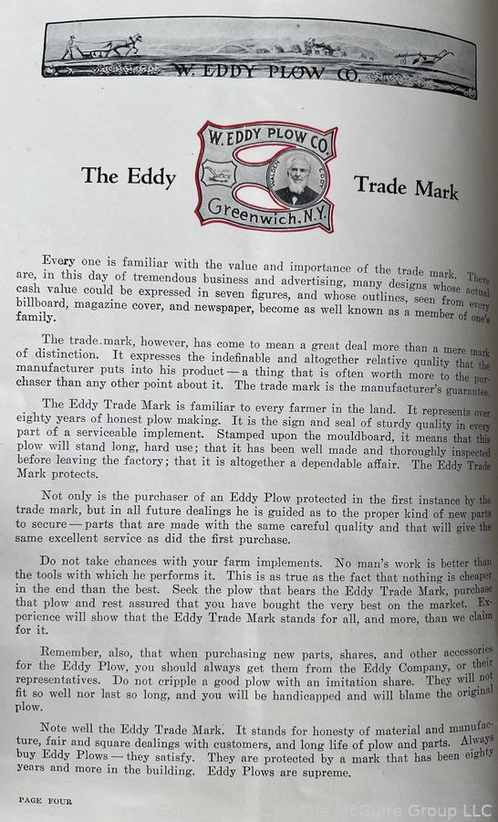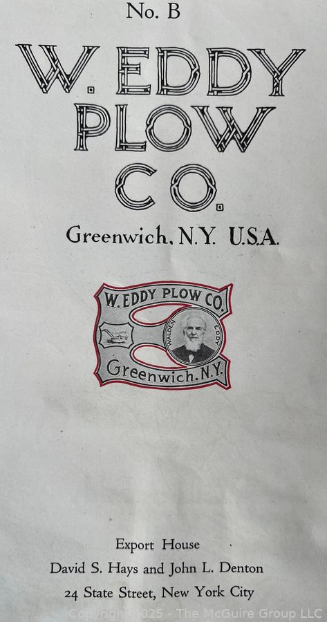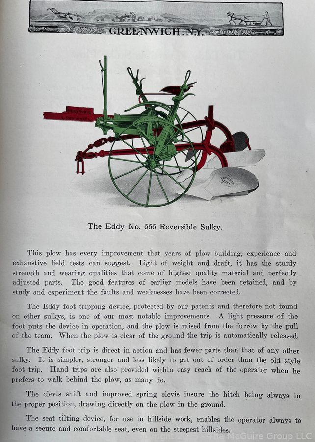 Lot #0024RME: Sales Pamphlet of The Eddy Plow Co., Greenwich NY
