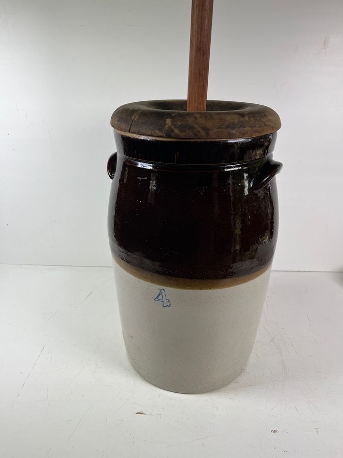 Lot #0155RM: Slip Glaze Crock Butter Churn