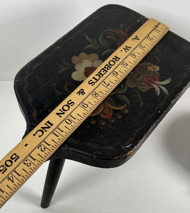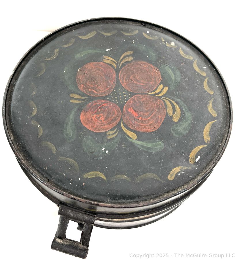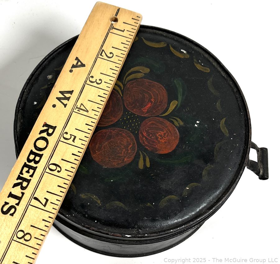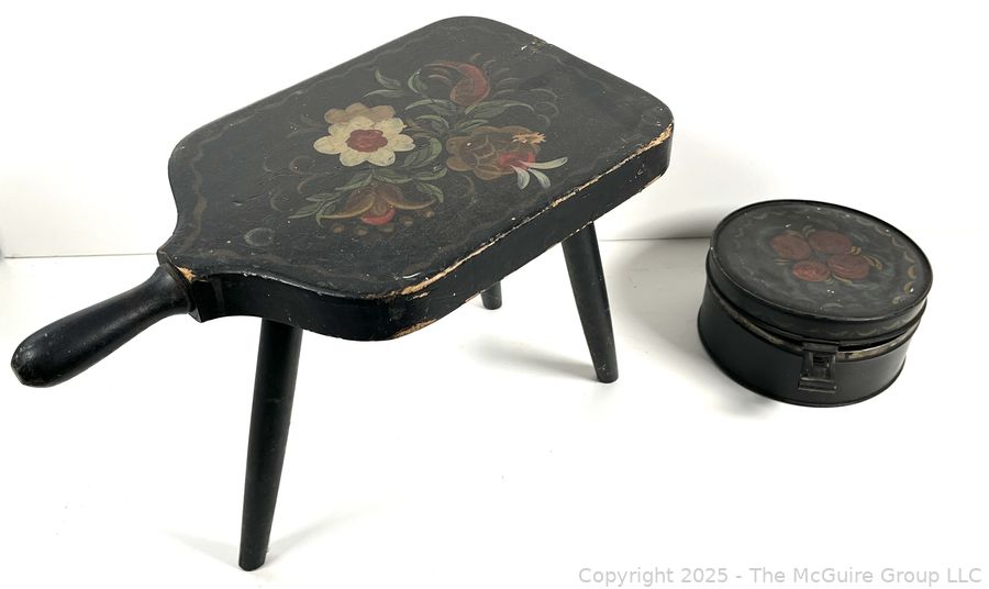 Lot #0287RM: Tole Painted 3-Legged Stool and Covered Tin