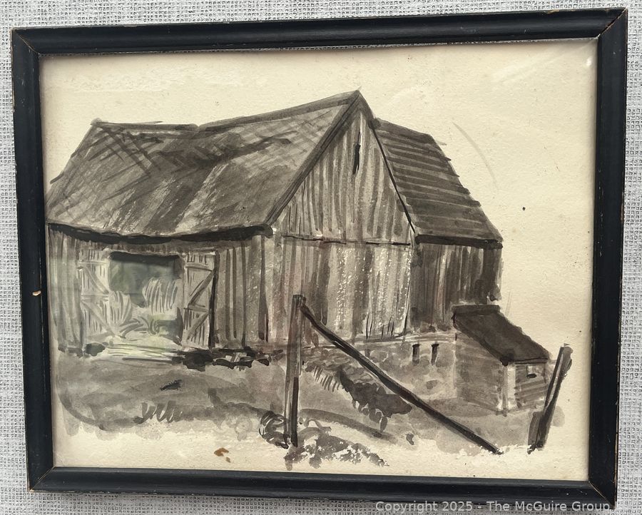 Lot #0025RM: Framed Under Glass Watercolor On Paper Titled, "Weathered Barn" By Jennie Mae McGuire (WAS 709)