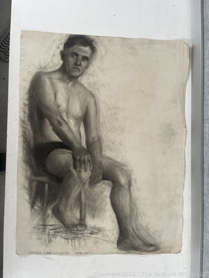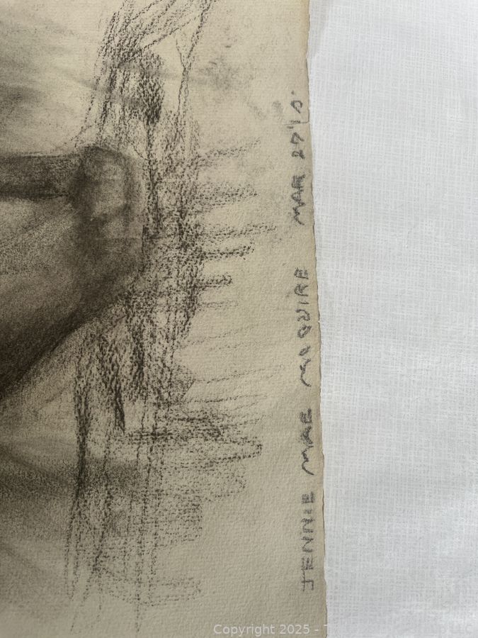 Lot #0102RM: Top Unframed Charcoal On Paper Titled, "The Seated Watcher" Circa 1915 Signed By Jennie Mae McGuire (WAS 753)