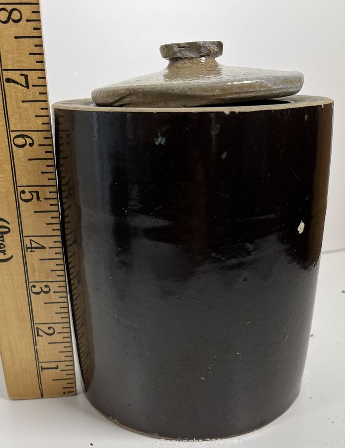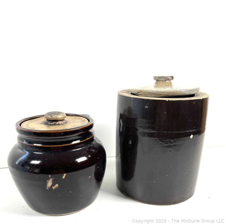 Lot #0219RM: Two (2) Lidded Stoneware Crocks