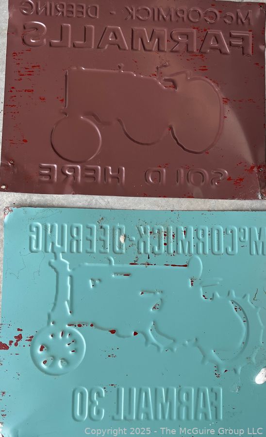 Lot #0024RMF: Two Metal Repro Tractor Signs. Measure 12 x 18"