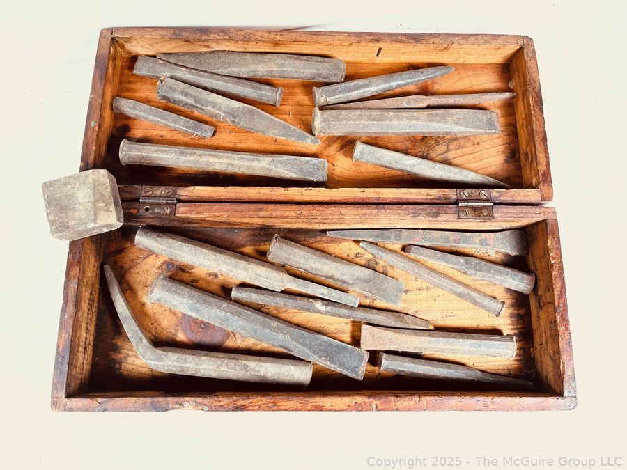 Lot #0509RM: Wooden Box Filled w/ Cold Steel Chisels and Punches