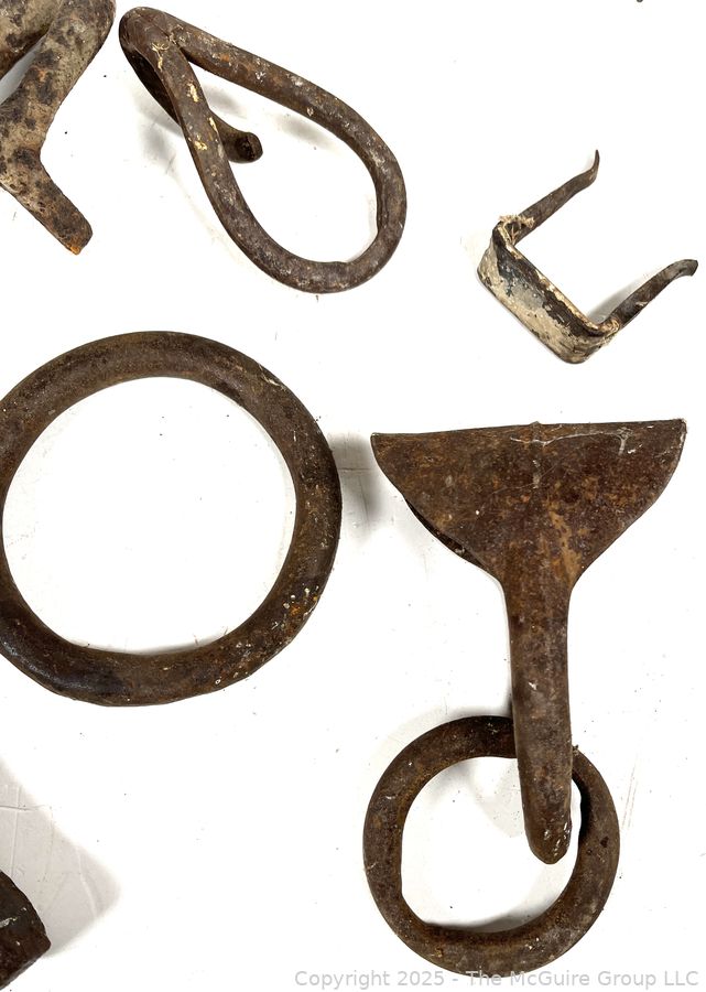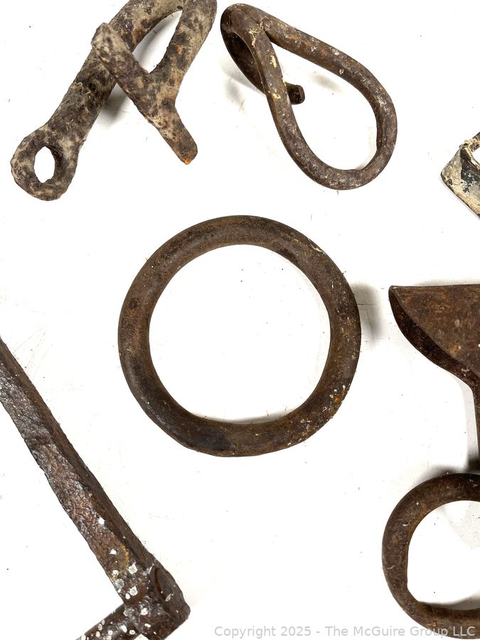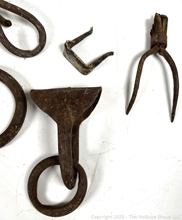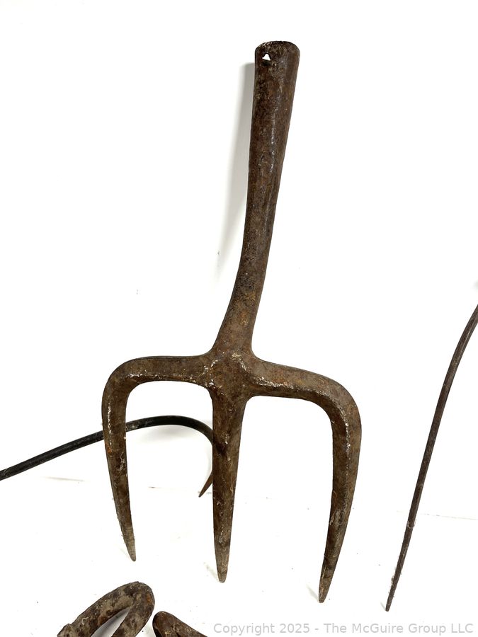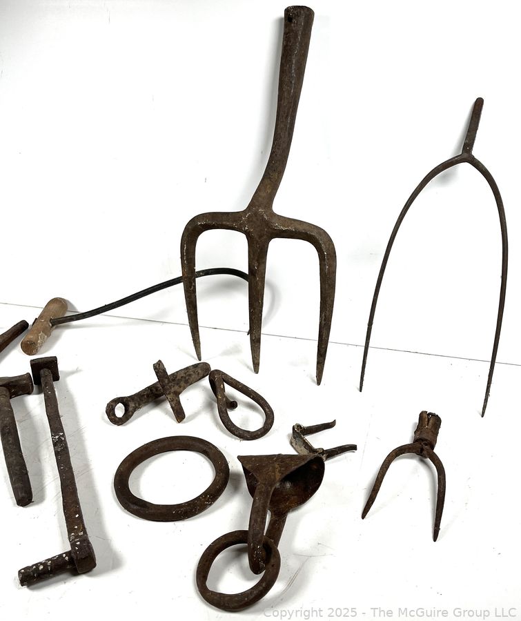 Lot #0601RM: 19th C Hand Forged Iron Farm Tools and Rake Heads