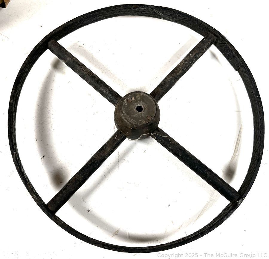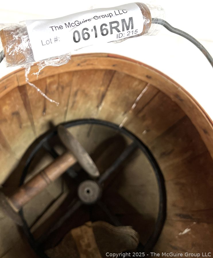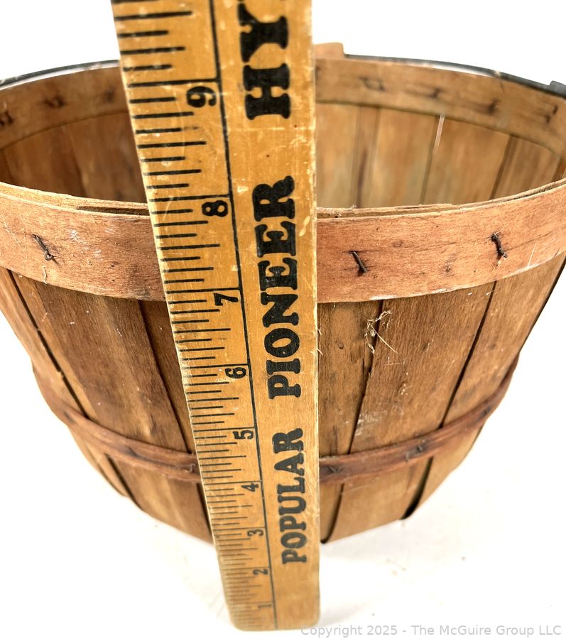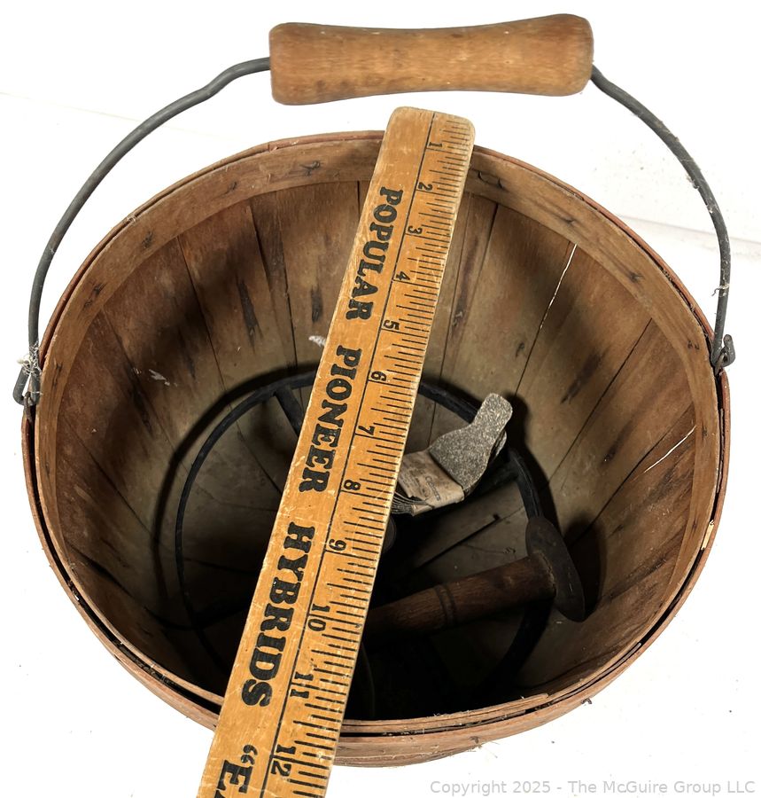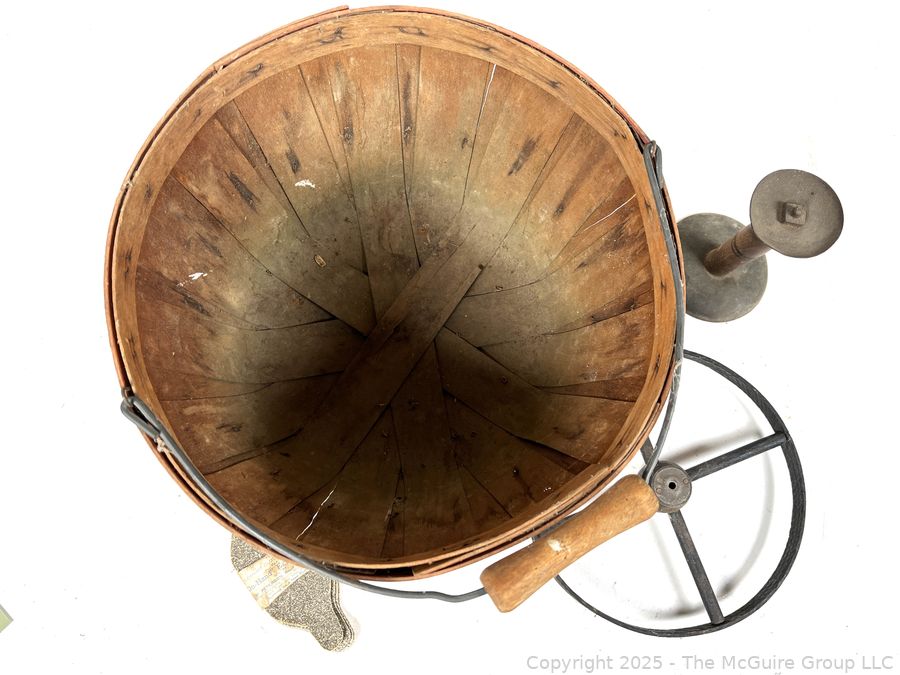 Lot #0616RM: Bushel Basket, Iron Wheel and Pack of Ten (10) "On Hand" Egg Cleaners