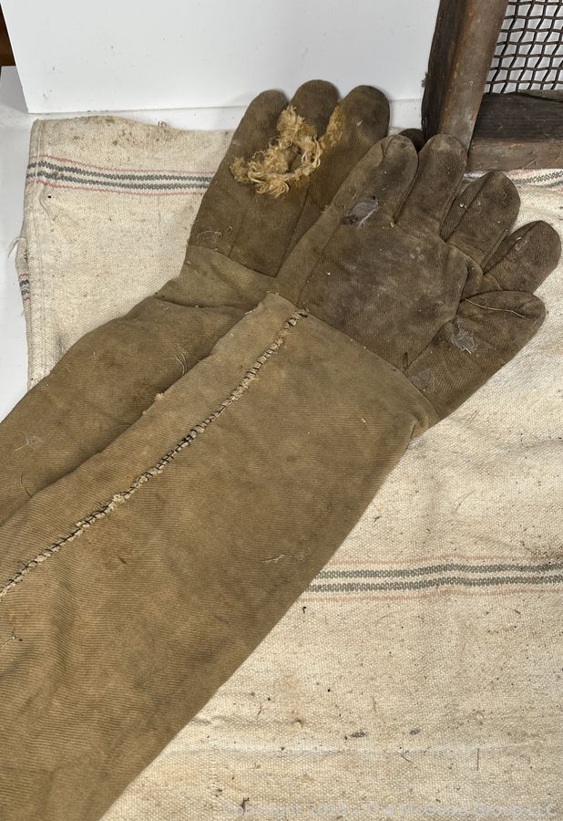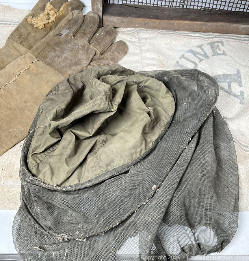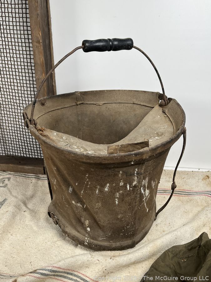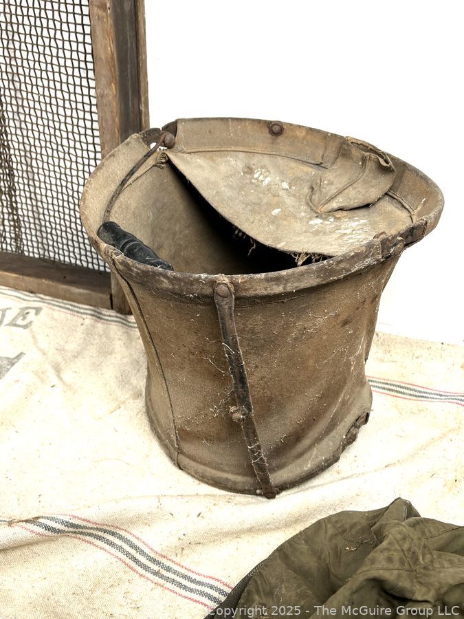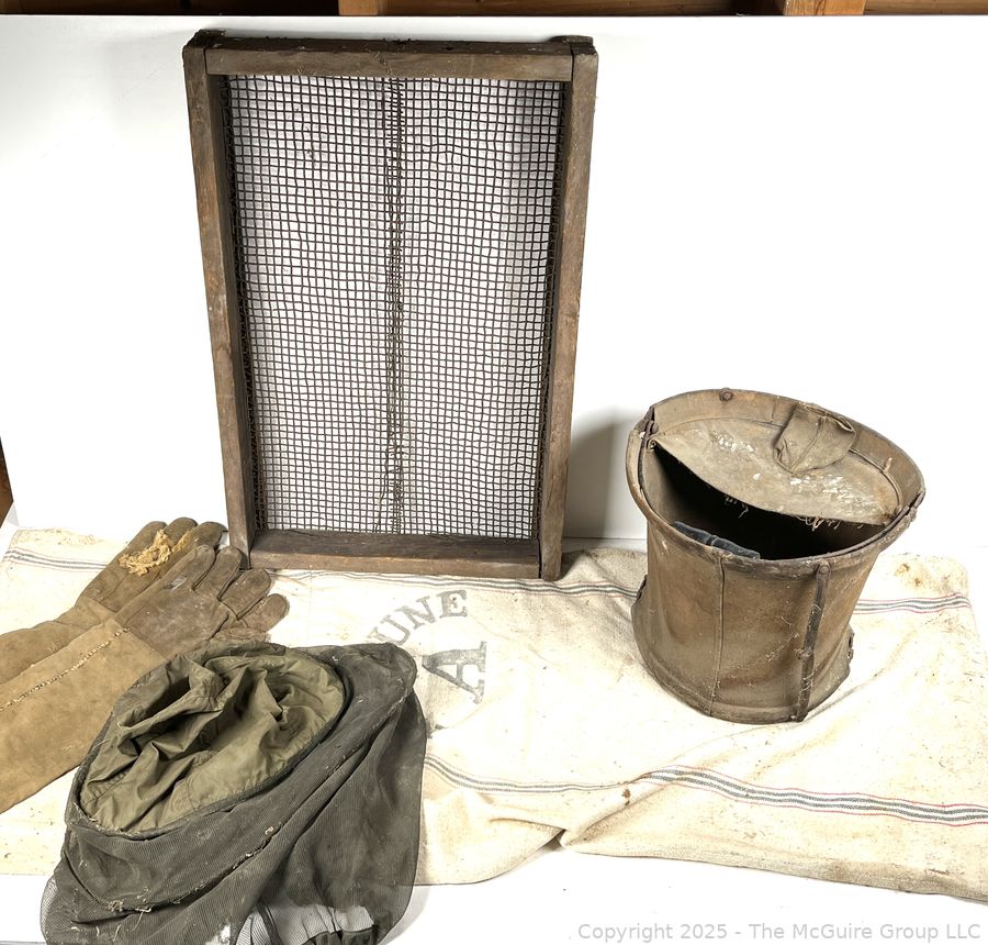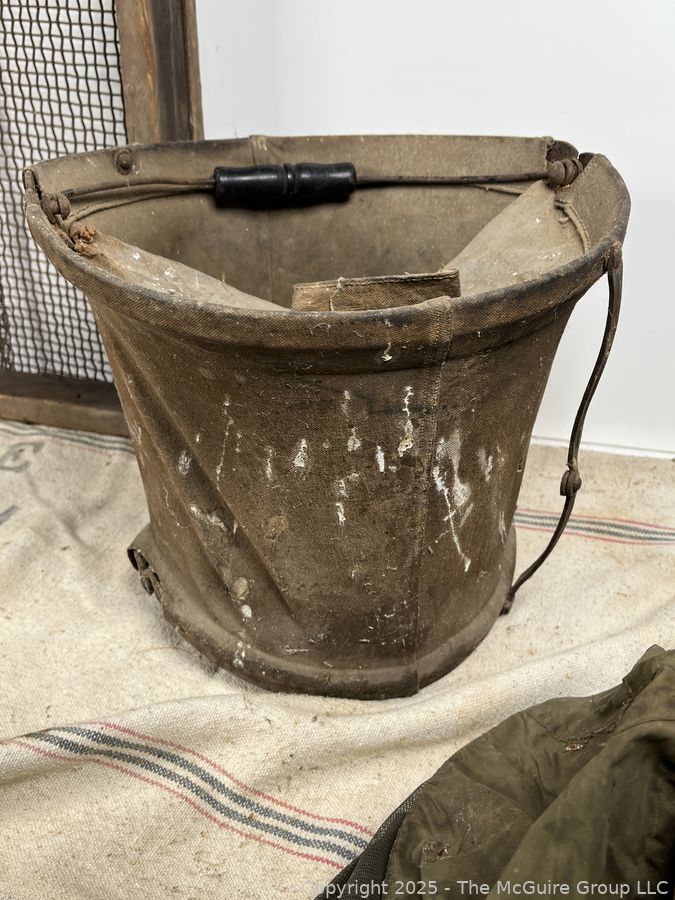 Lot #0607RM: Canvas Pail, Primitive Sifter and Beekeeper's Hood