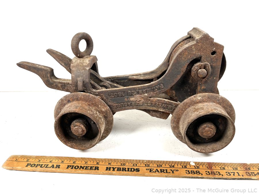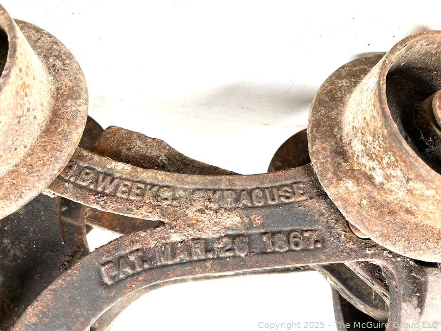 Lot #0594RM: Circa 1870 J.B. Weeks Barn Cast Iron Trolley Made in Syracuse NY