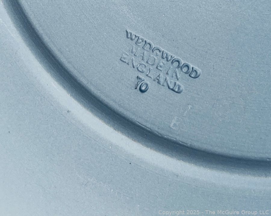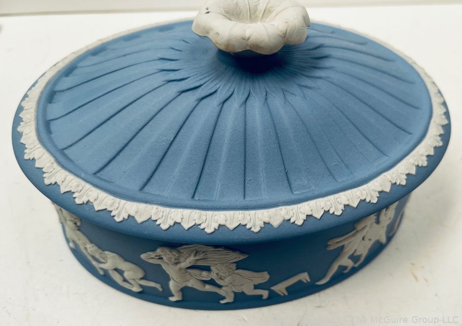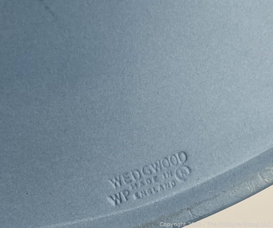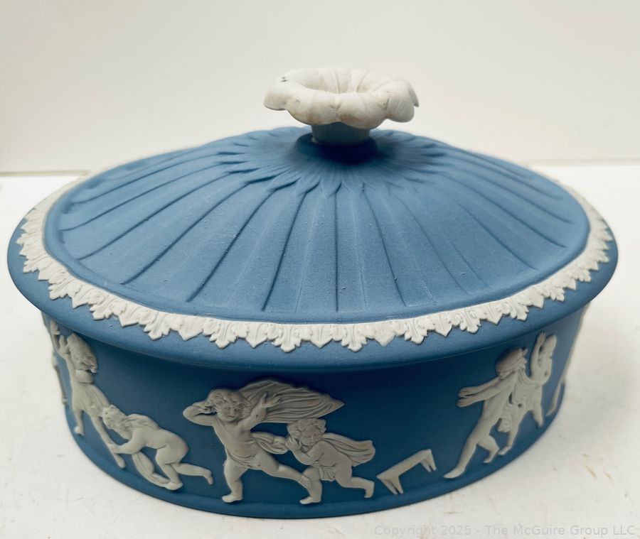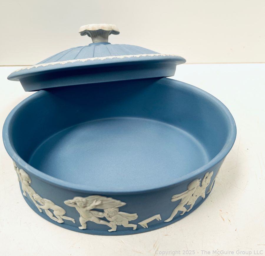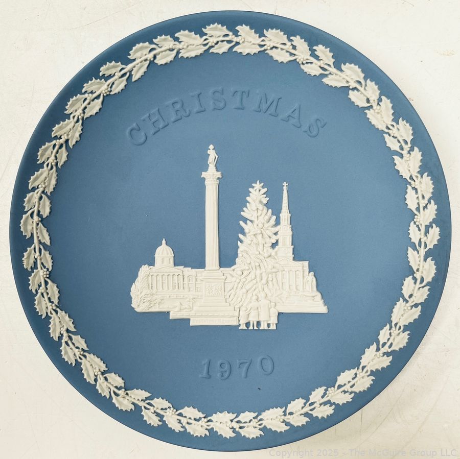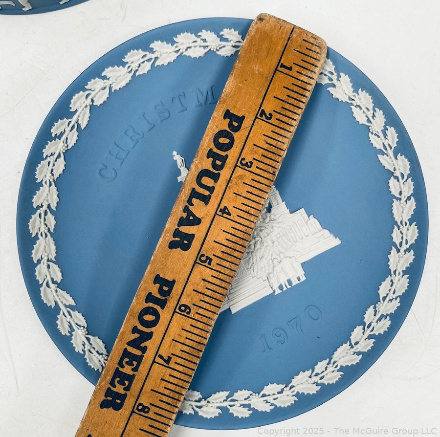 Lot #0898RM: English Blue Wedgwood Jasperware 1970 Christmas Plate and Oval Lidded Box