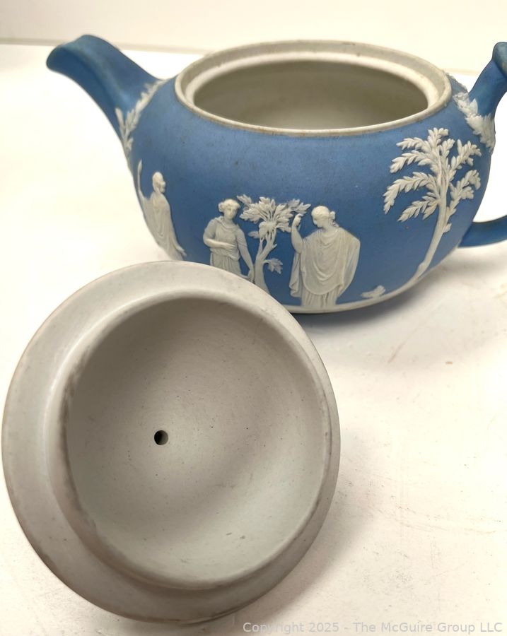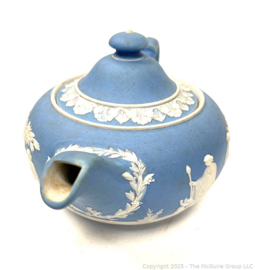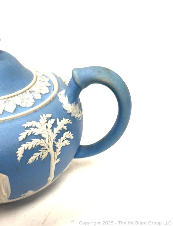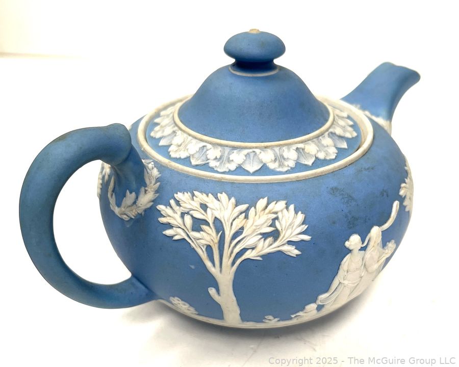 Lot #0877RM: English Wedgwood Blue Jasperware Teapot
