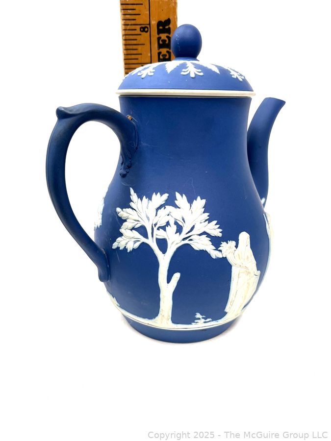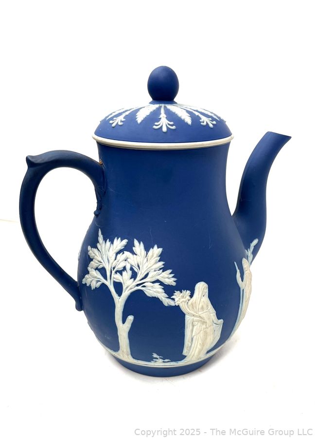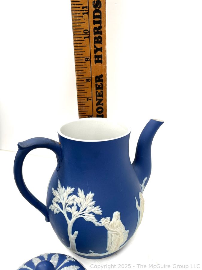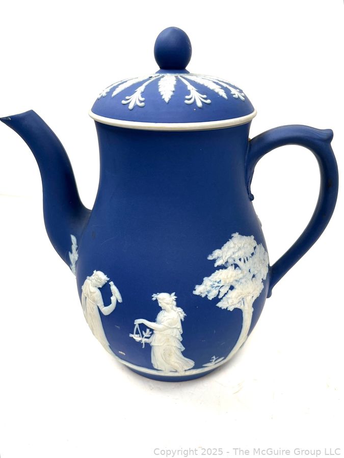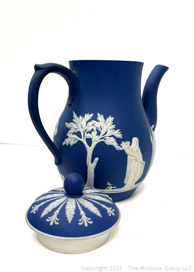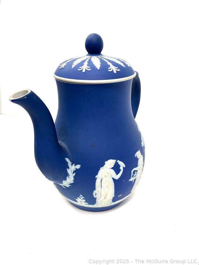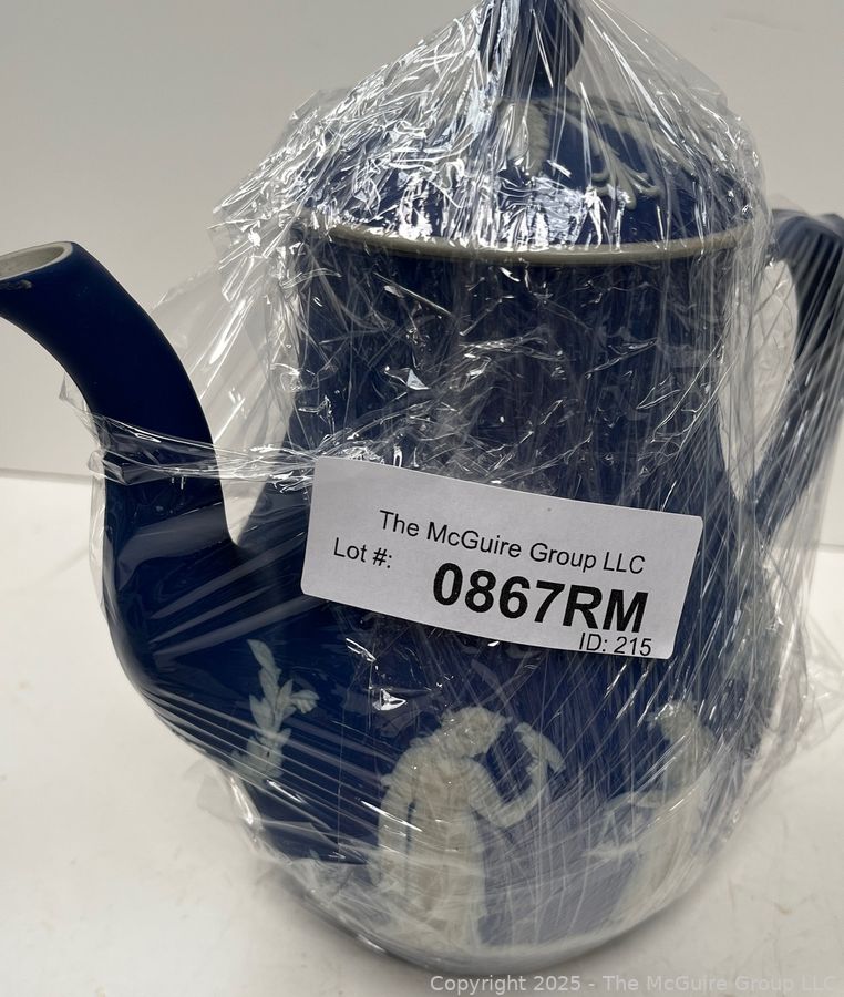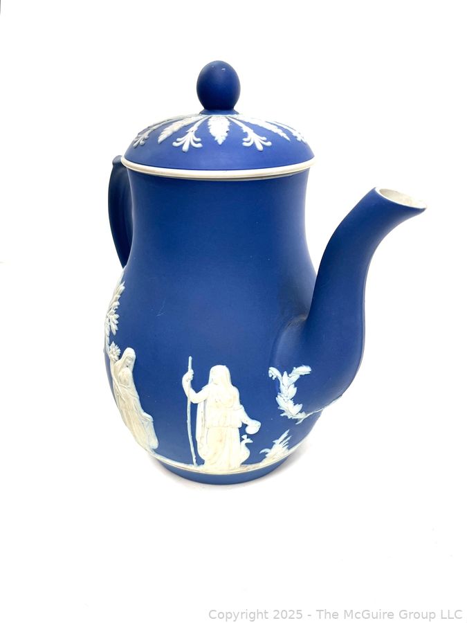 Lot #0867RM: English Wedgwood Cobalt Blue Jasperware Coffee Pot & Lid
