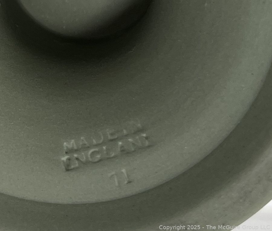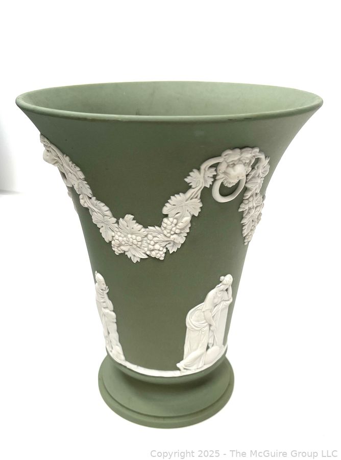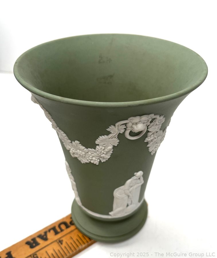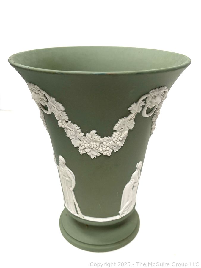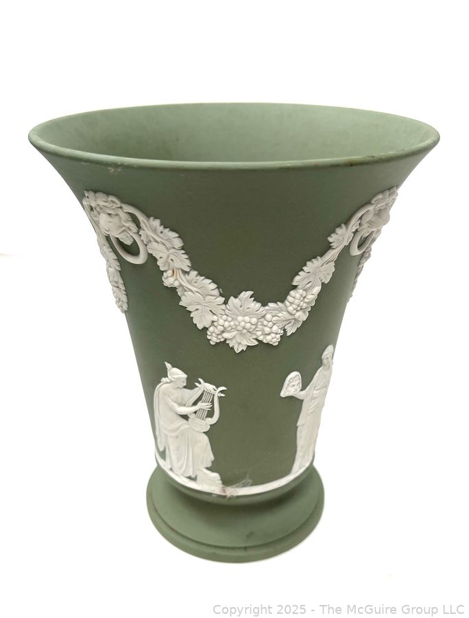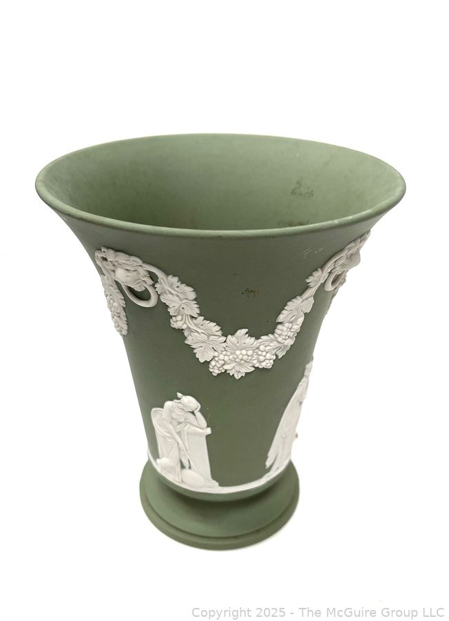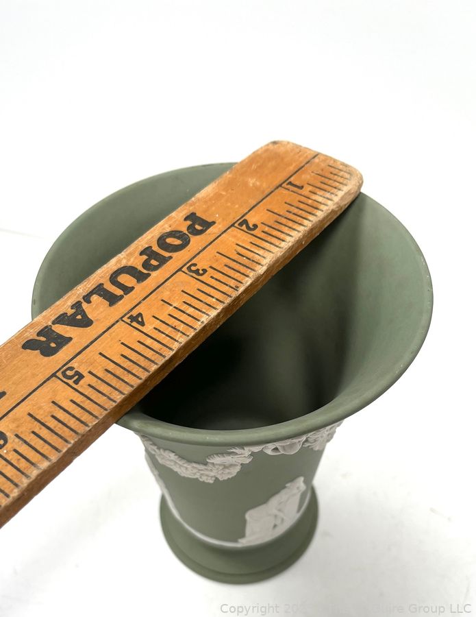 Lot #0880RM: English Wedgwood Cobalt Sage Green Jasperware Vase 6"T
