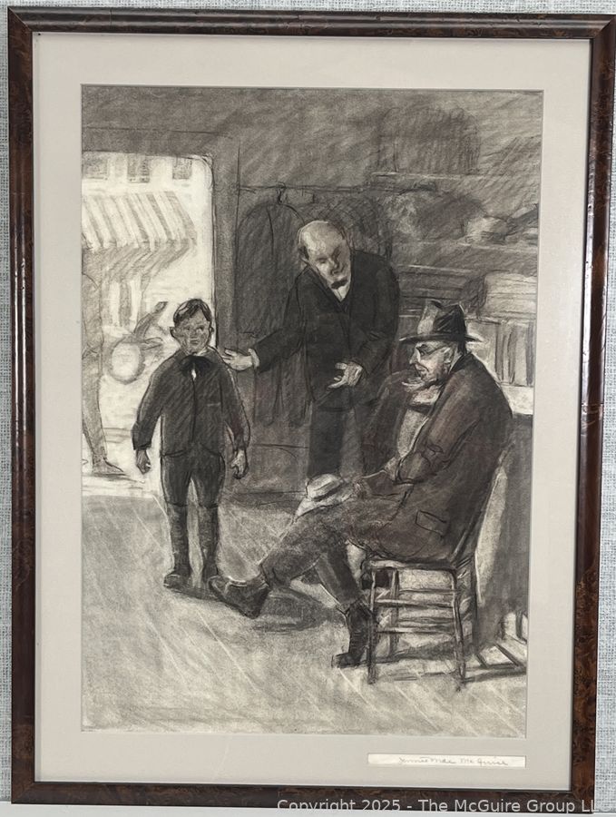 Lot #0716RM: Framed Charcoal on Paper Titled, "We Can't Afford It" Signed Jennie Mae McGuire