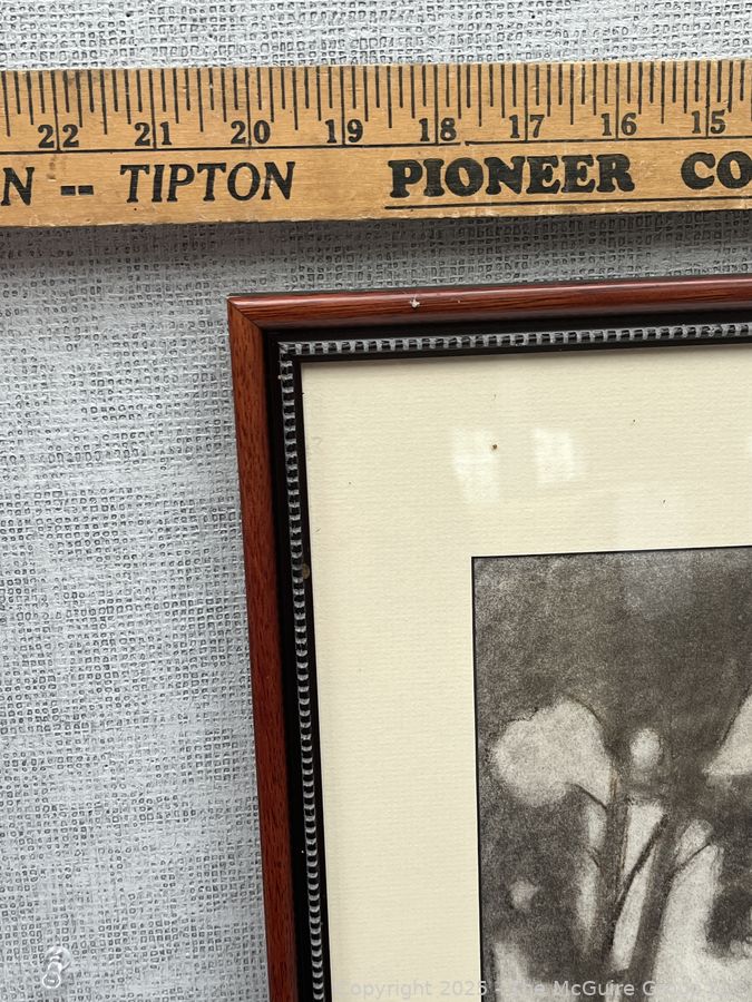 Lot #0707RM: Framed Under Glass Charcoal on Paper Titled, "Gathering Wildflowers" Signed Jennie Mae McGuire