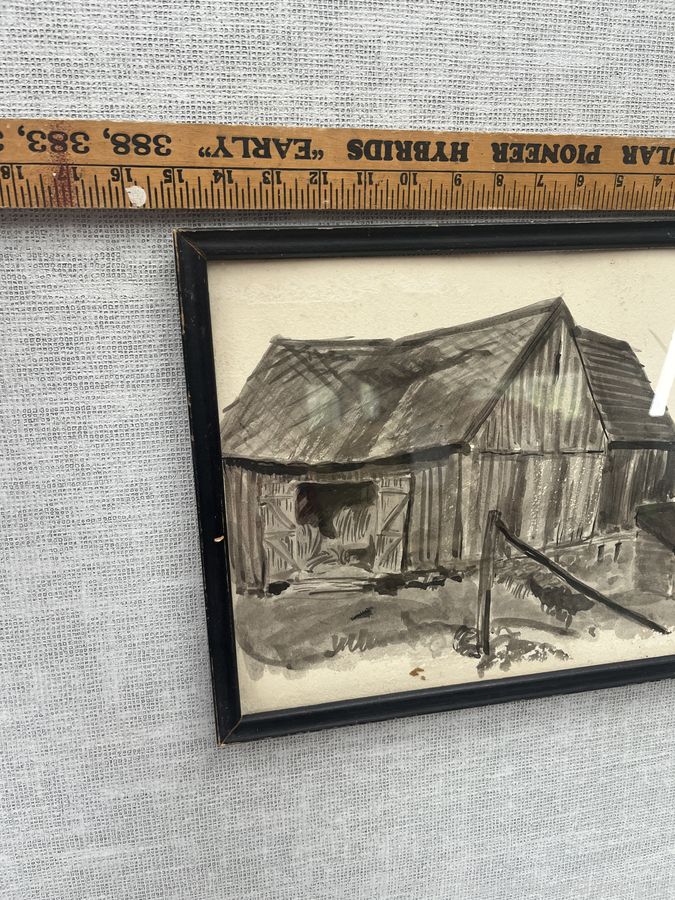 Lot #0709RM: Framed Under Glass Watercolor? On Paper Titled, "Weathered Barn" By Jennie Mae McGuire