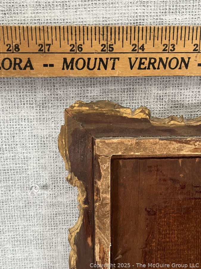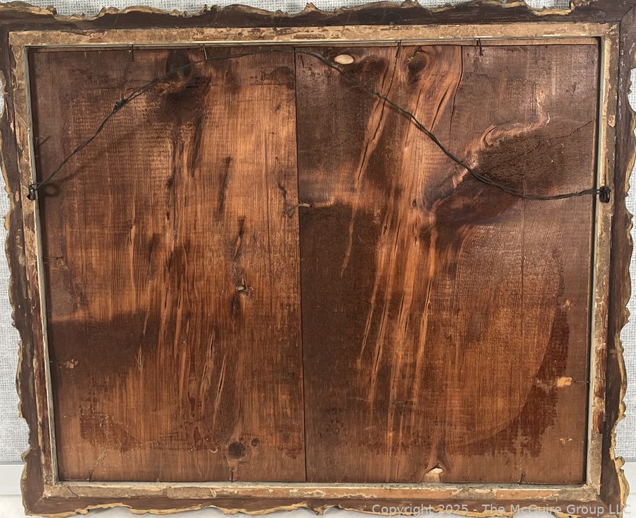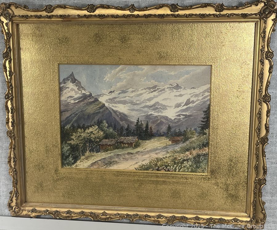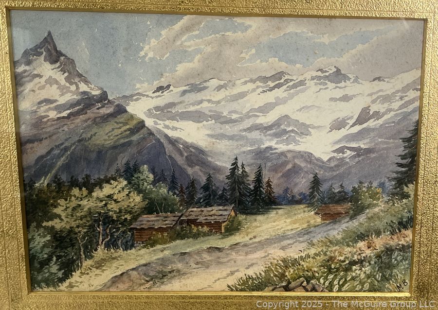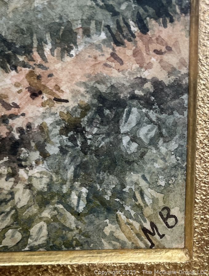 Lot #0702RM: Giltwood Framed Landscape of Mountain Scene Signed by Artist MB