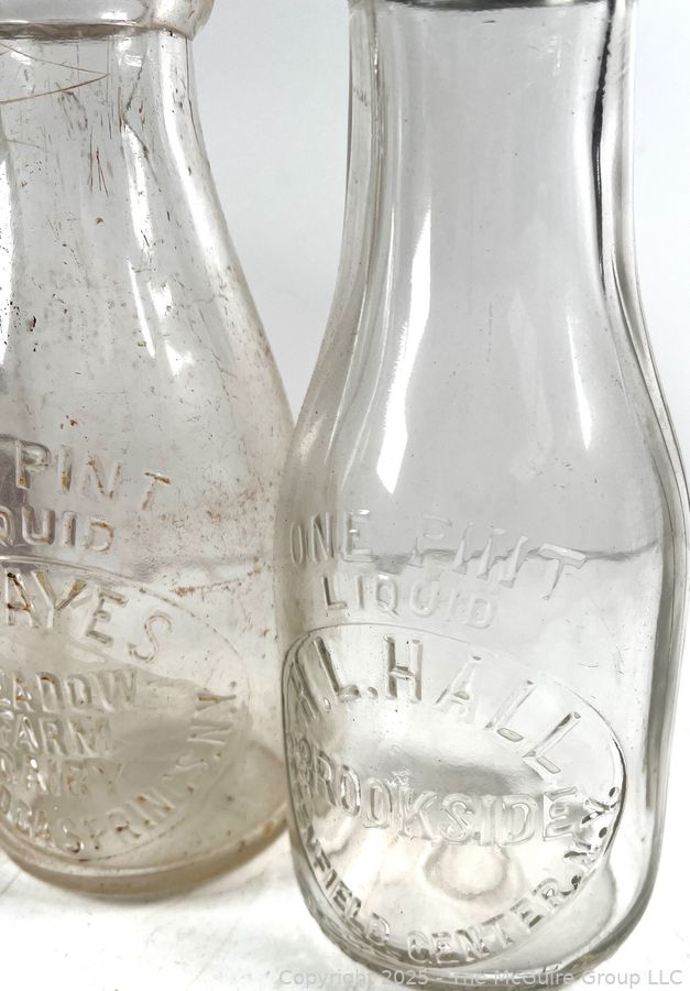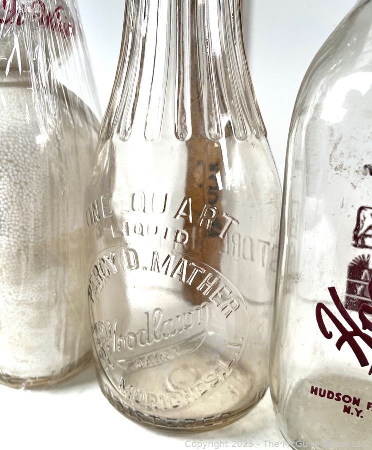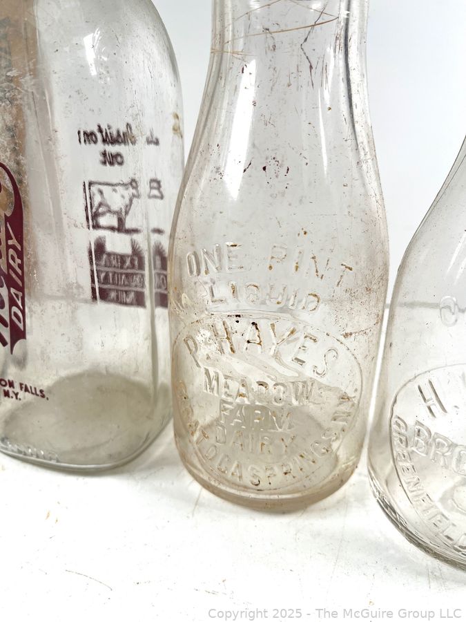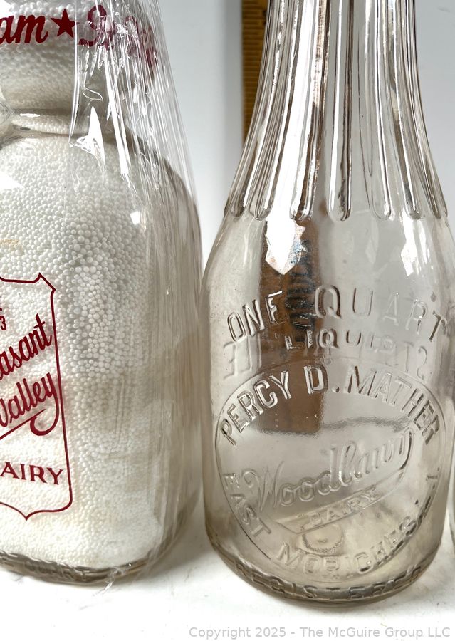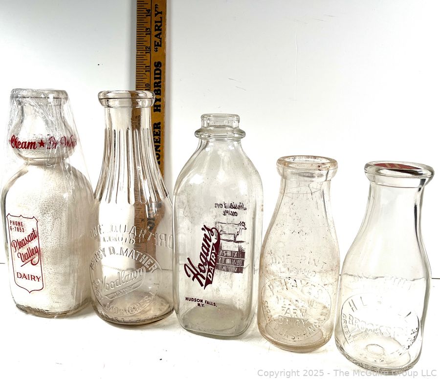 Lot #0941RM: Group of Five (5) Glass Milk Bottles Including Pleasant Valley, Hogan's and Percy Mather