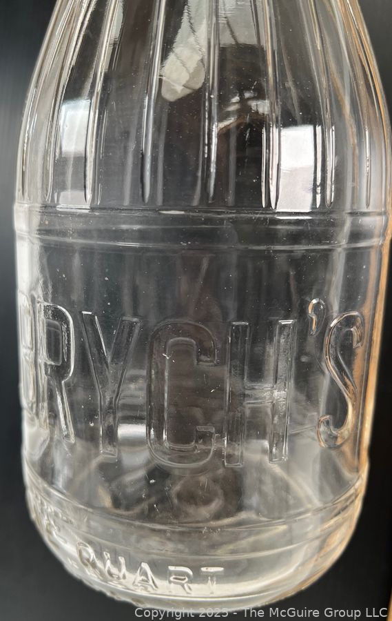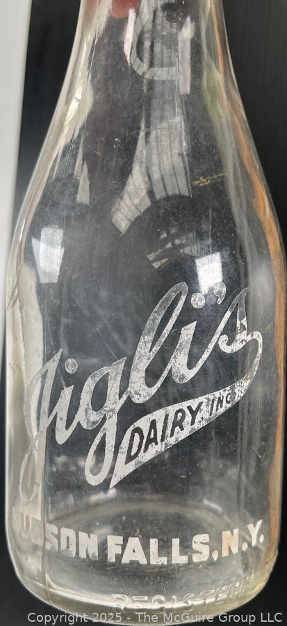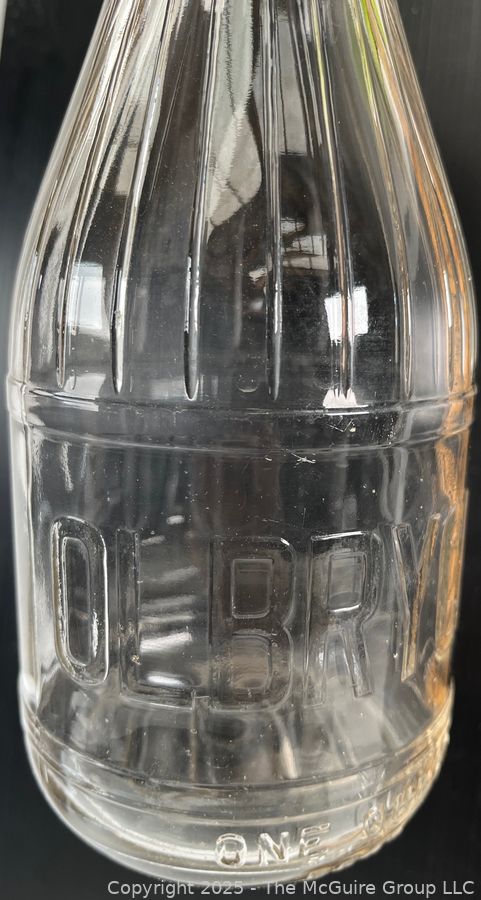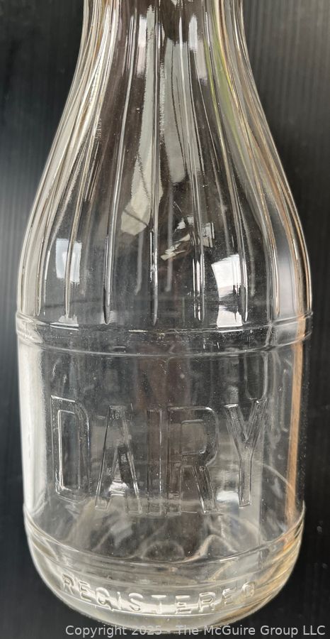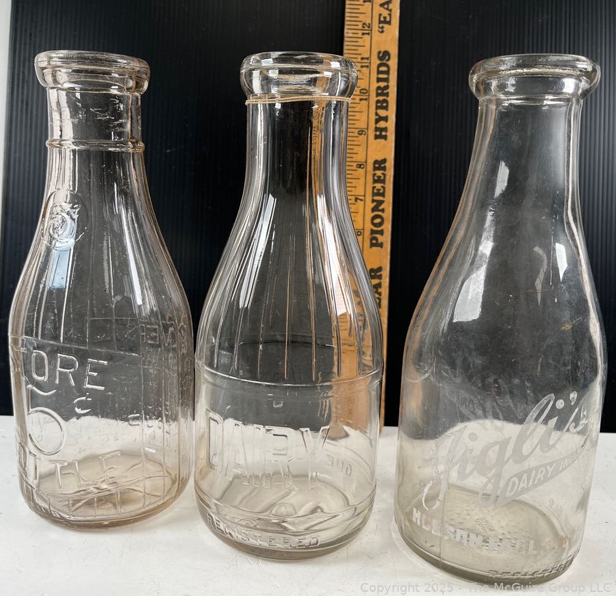 Lot #0940RM: Group of Three (3) Embossed Glass Milk Bottles