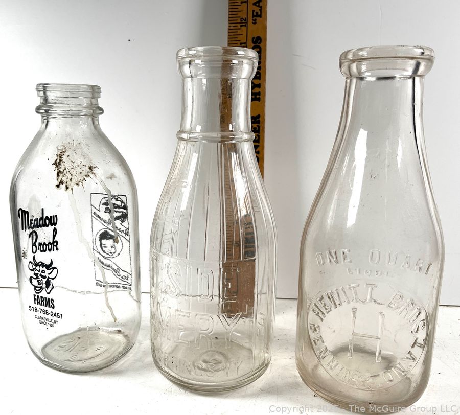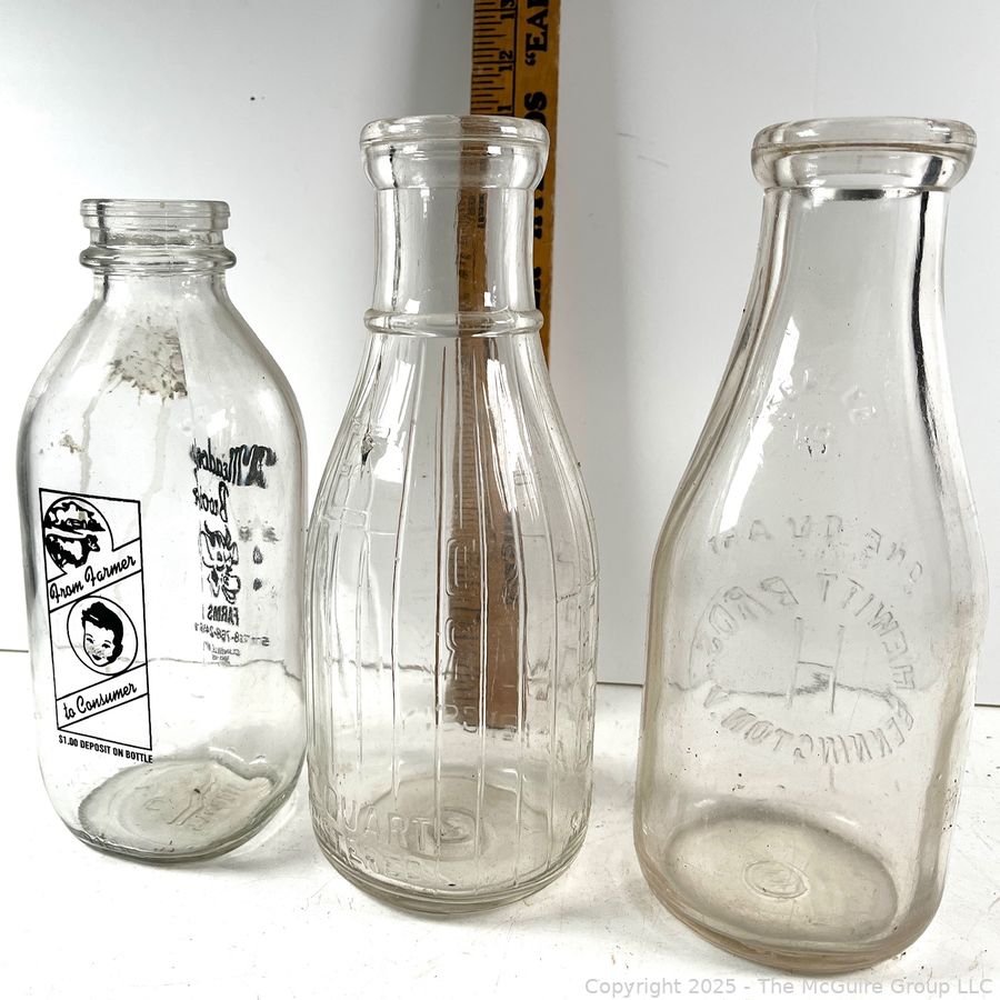 Lot #0955RM: Group of Three (3) Glass Milk Bottles Including Meadowbrook