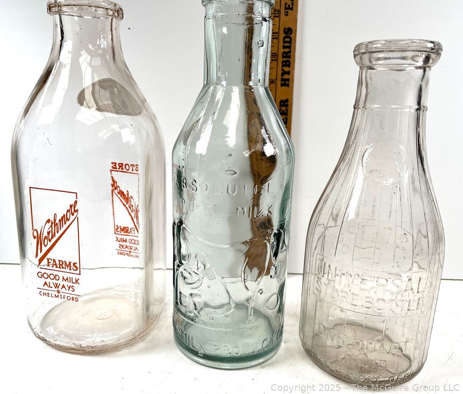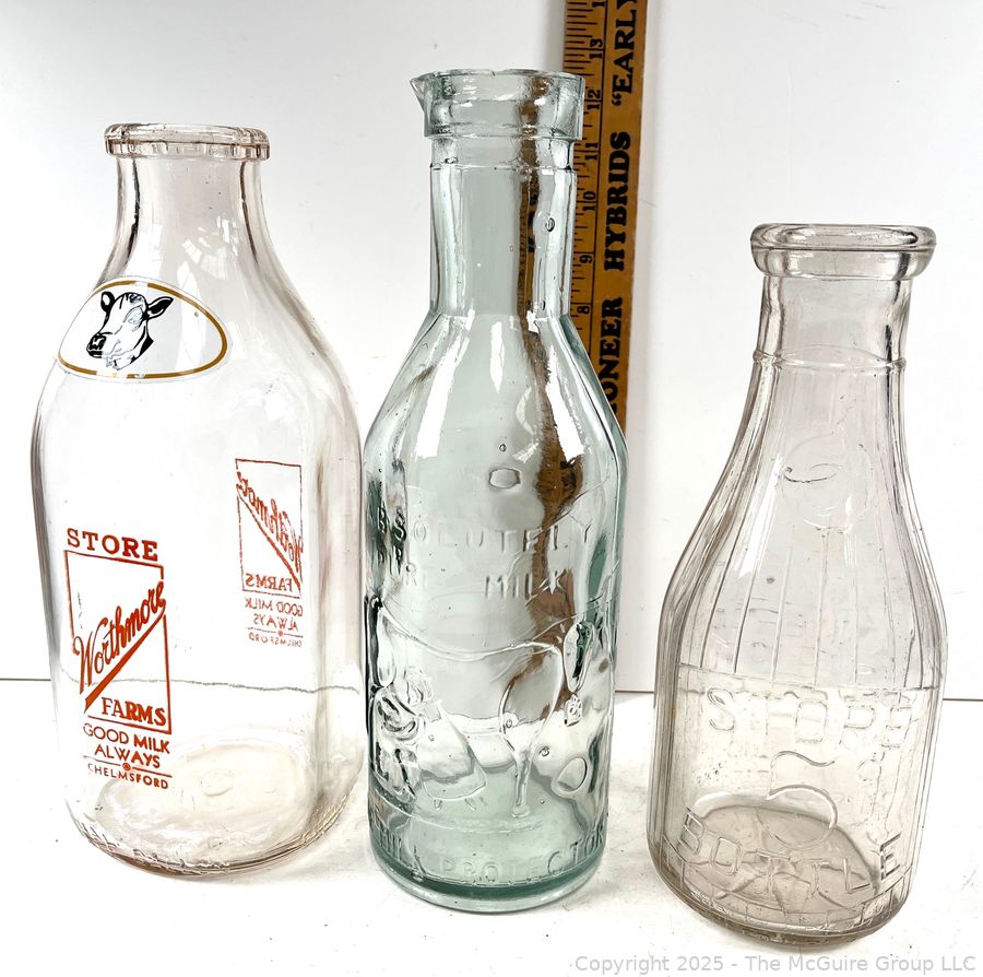Lot #0927RM: Group of Three (3) Glass Milk Bottles Including Worthmore