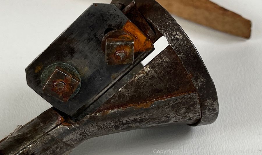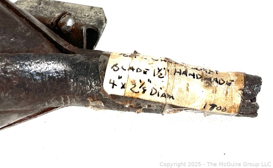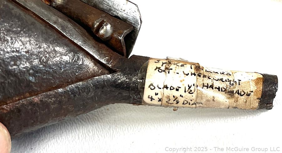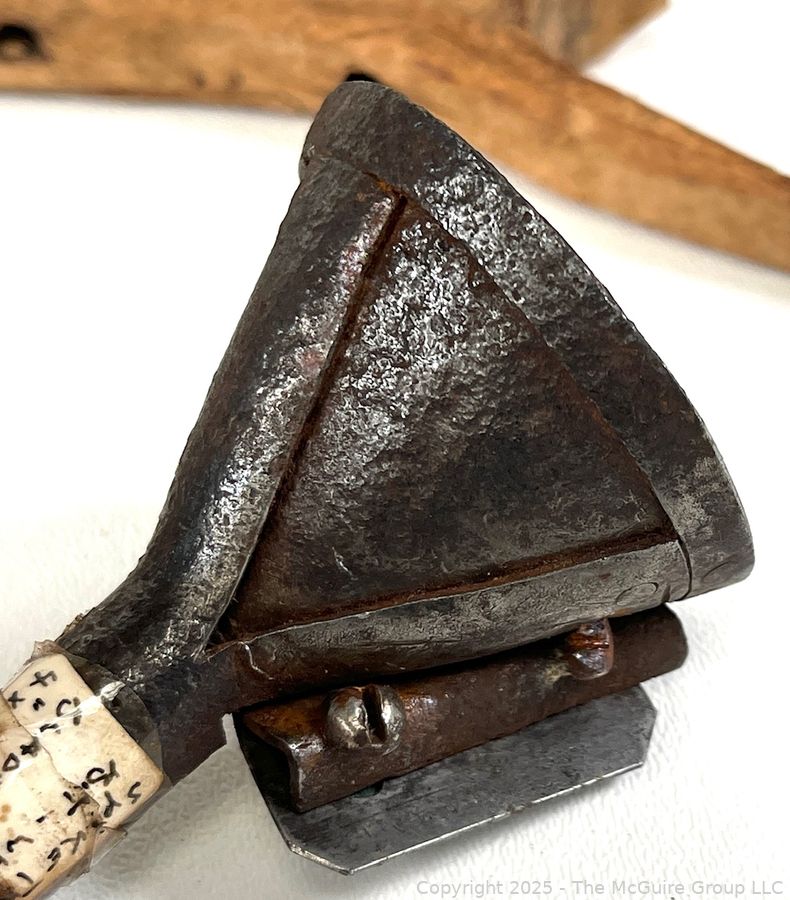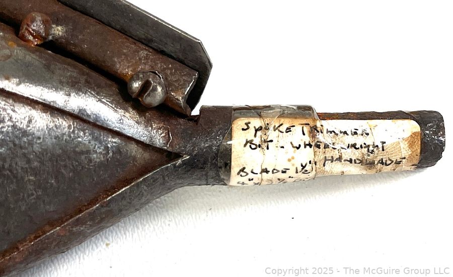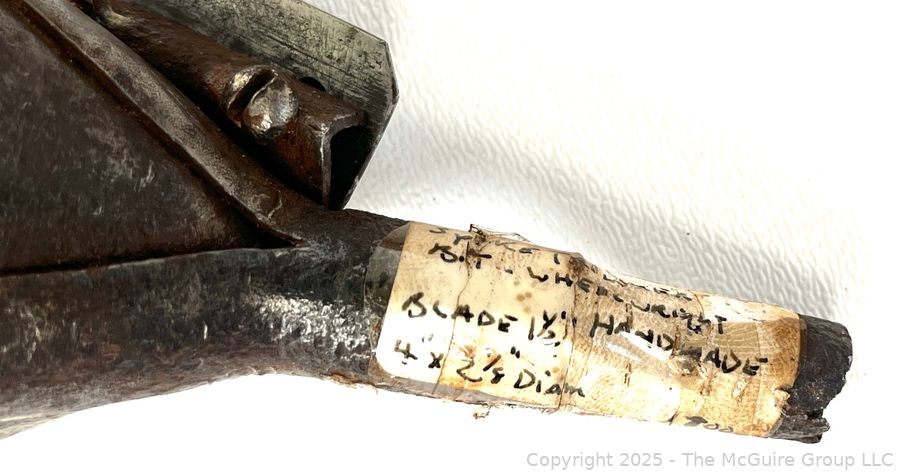 Lot #1433RM: Grouping of Traditional Hand Tools Used by Cobblers and Wheelwrights Tradesmen Including Hand Forged Iron Spoke Trimmer