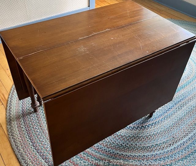 Lot #1053RM: Maple Drop Leaf Table. Hawley Furniture Co. Measures 42W x 73"L